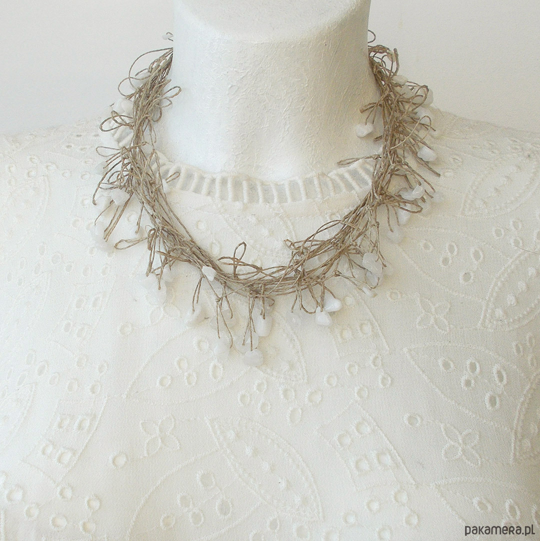 Oryginalny naszyjnik na bazie naturalnego lnu