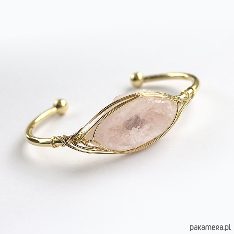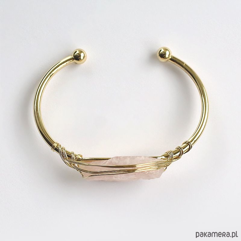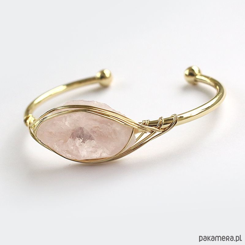 Elegancka energetyczna bransoletka z pozłacanej miedzi z pięknym surowym kwarcem różowym. Oczyszczona, zregenerowana, napełniona energią czystego światła o najwyższej wibracji. ❤