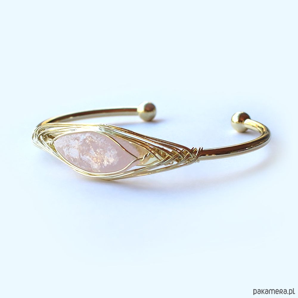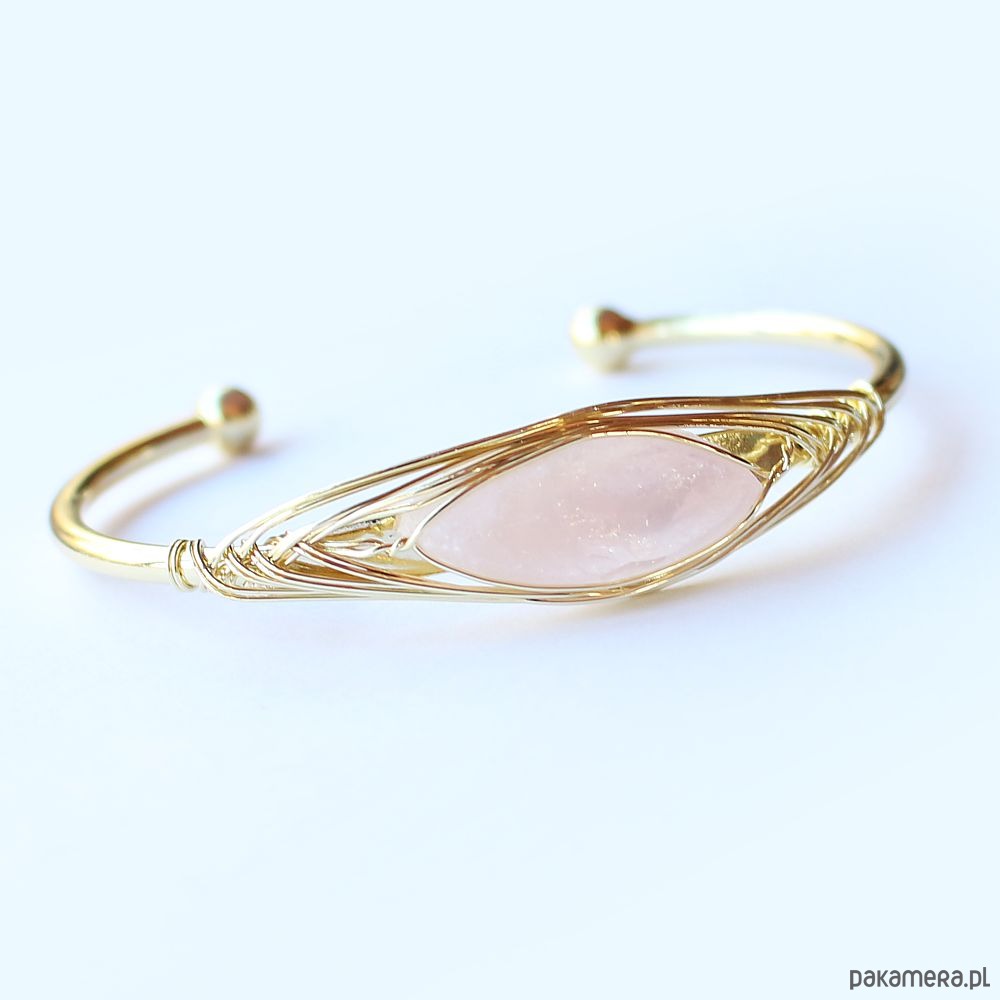 Elegancka energetyczna bransoletka z pozłacanej miedzi z pięknym surowym kwarcem różowym. Oczyszczona, zregenerowana, napełniona energią czystego światła o najwyższej wibracji. ❤