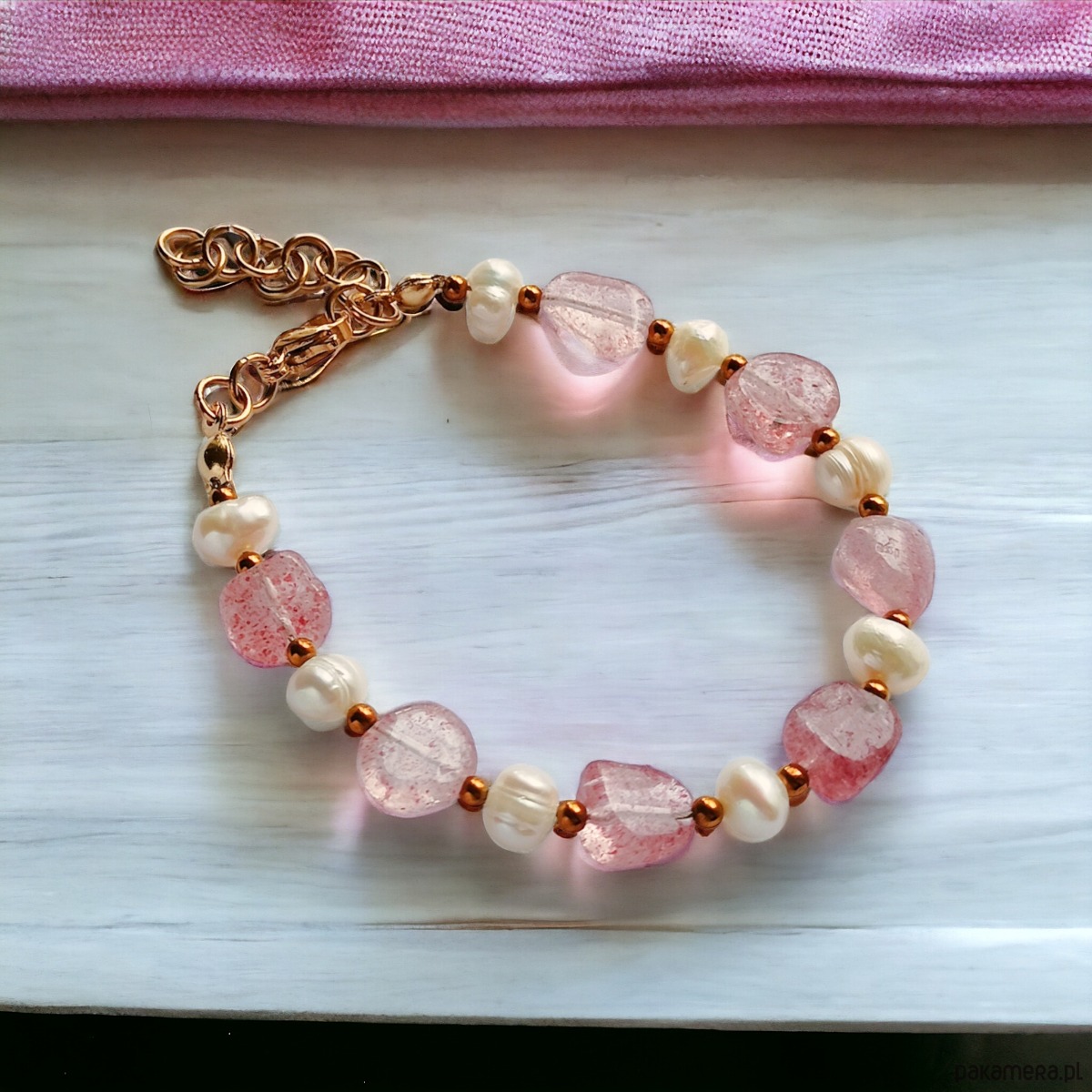 Kwarc truskawkowy & PERŁY. bransoletka