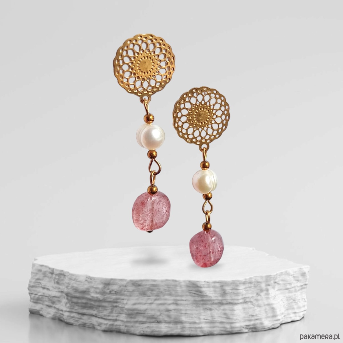- Rodzaj kamienia: perła, kwarc różowy