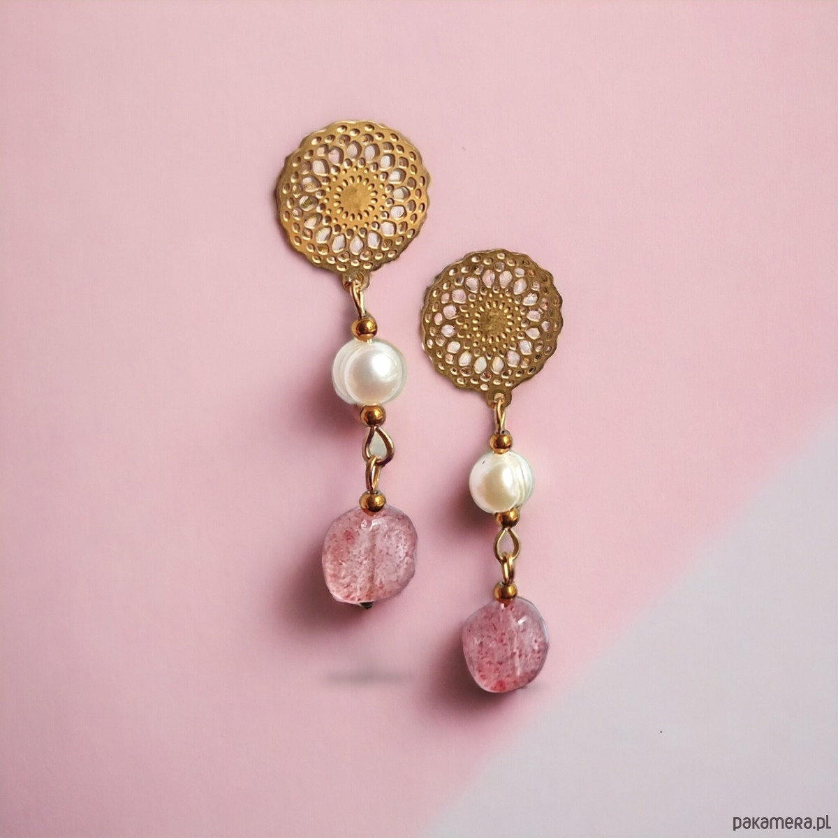 - Rodzaj kamienia: kwarc różowy, perła