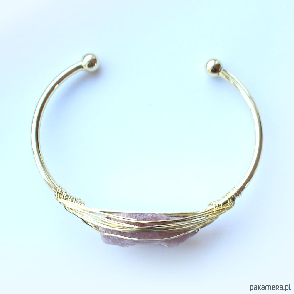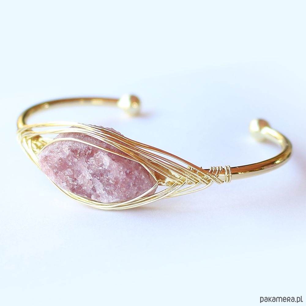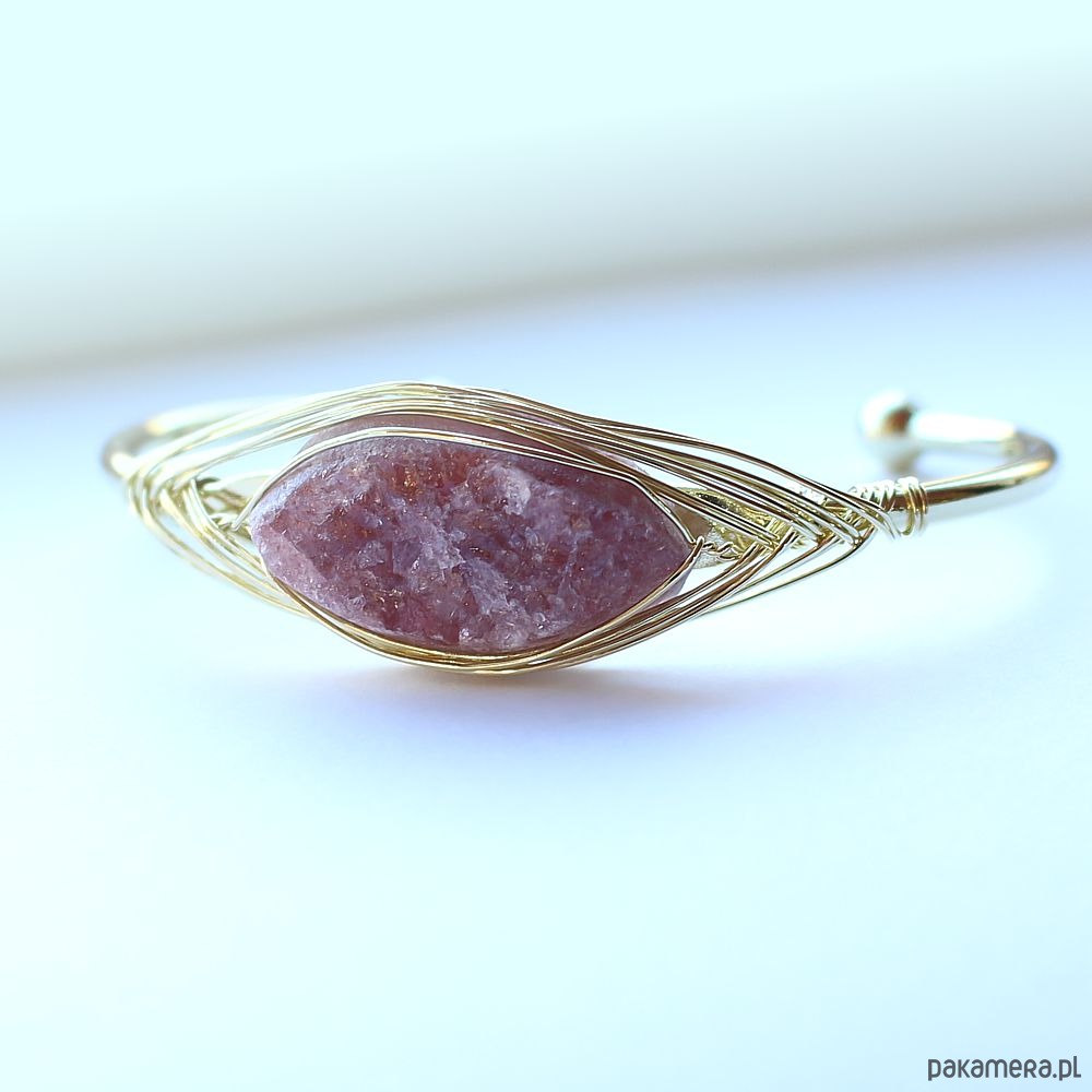 Elegancka energetyczna bransoletka z pozłacanej miedzi z pięknym surowym kwarcem truskawkowym. Oczyszczona, zregenerowana, napełniona energią czystego światła o najwyższej wibracji. ❤