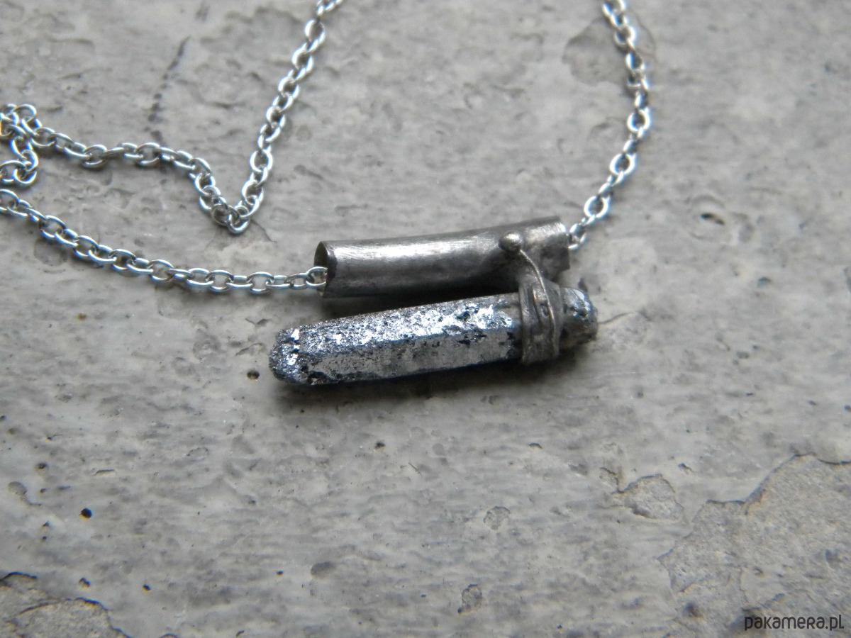 kwarc tytanowy oprawiony w ocynowaną miedz.