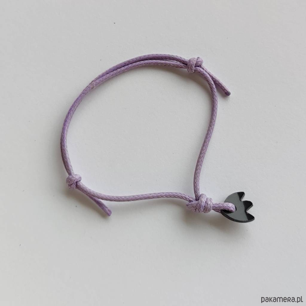 Efektowny, nowoczesny, a zarazem romantyczny dodatek. KWIAT to uroczy i delikatny wzór. Bransoletka wykonana jest z: tworzywo sztuczne, ozdobny sznurek. Długość zawieszki – ok. 1 cm. Szerokość zawieszki – ok. 1cm. Istnieje możliwość wykonania bransoletki w innej kolorystyce i kształcie zawieszki.