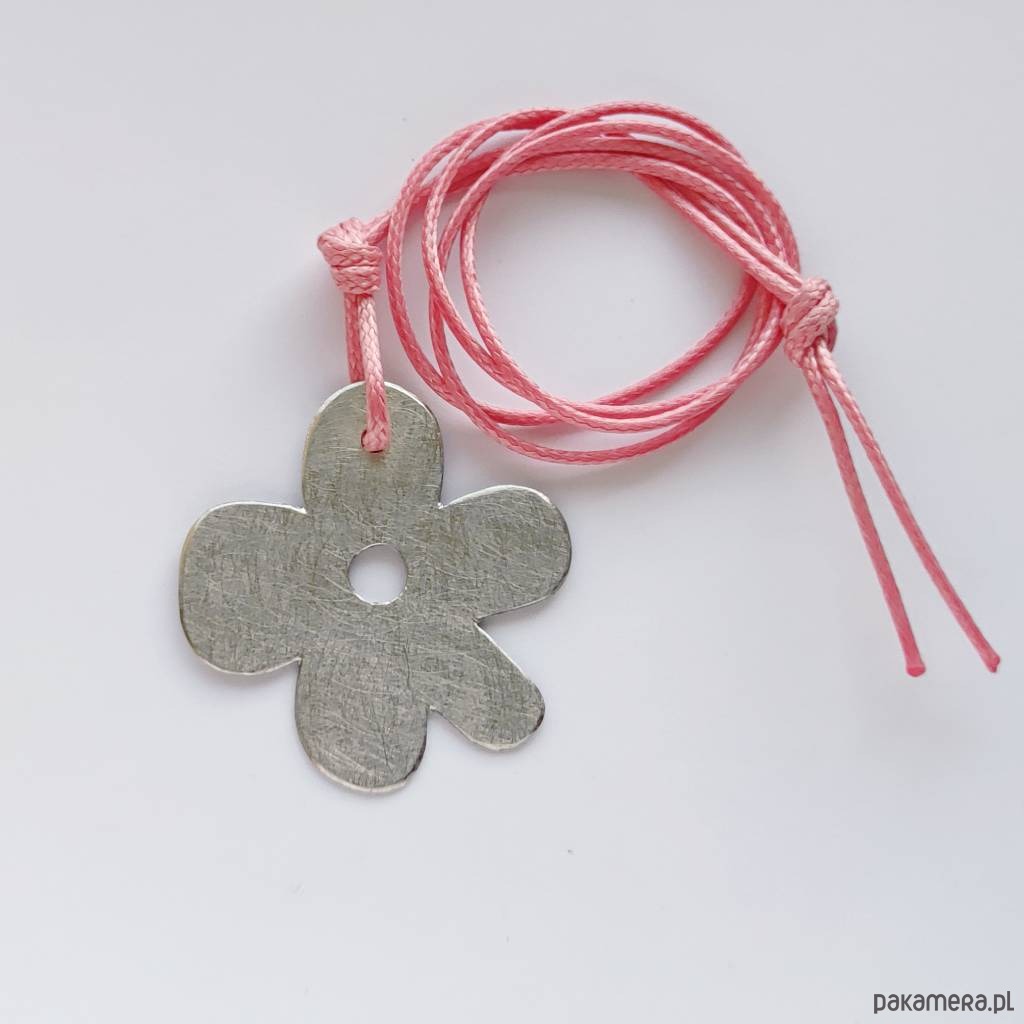 Efektowny, nowoczesny, a zarazem romantyczny dodatek. KWIAT to uroczy i delikatny wzór. W wyjątkowy sposób łączy on ażur z metalem, który przyciąga wzrok jak mało która ozdoba. Wisiorek wykonany jest z -alpaki, ozdobny sznurek.Alpaka : zmatowiona. Długość sznurka - 70 cm. Długość zawieszki - 4,3cm. Szerokość zawieszki - 4 cm.