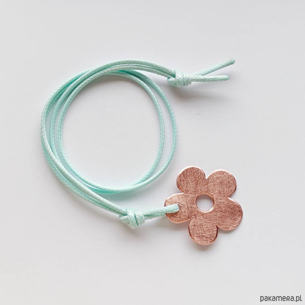 Efektowny, nowoczesny, a zarazem romantyczny dodatek. KWIAT to uroczy i delikatny wzór. W wyjątkowy sposób łączy on ażur z metalem, który przyciąga wzrok jak mało która ozdoba. Wisiorek wykonany jest z -miedź, ozdobny sznurek. Miedź: zmatowiona. Długość sznurka - 70 cm. Długość zawieszki - 3,5cm. Szerokość zawieszki - 3,5 cm.