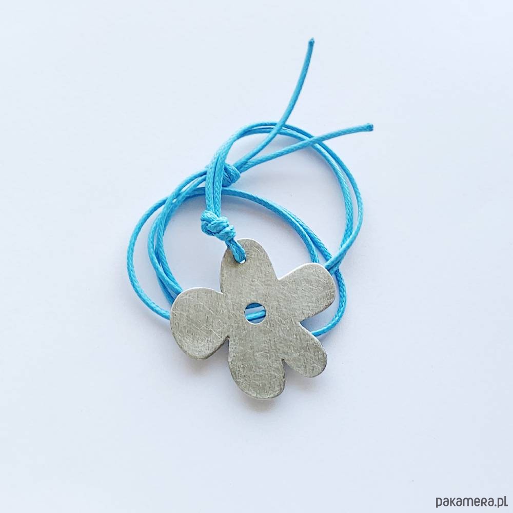 Efektowny, nowoczesny, a zarazem romantyczny dodatek. KWIAT to uroczy i delikatny wzór. W wyjątkowy sposób łączy on ażur z metalem, który przyciąga wzrok jak mało która ozdoba. Wisiorek wykonany jest z -alpaki, ozdobny sznurek.Alpaka : zmatowiona. Długość sznurka - 70 cm. Długość zawieszki - 4,3cm. Szerokość zawieszki - 4 cm.
