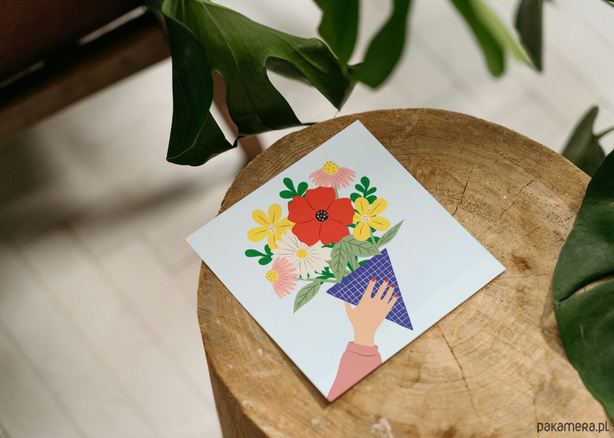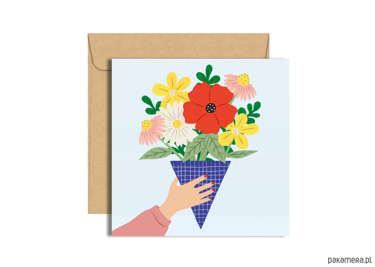 Kwiatki dla... Kartka okolicznościowa na wszystkie okazje do wyrażenia miłości, wdzięczności, przyjaźni i wiele innych. Składana, z ekologiczną kopertą i miejscem na wpisanie własnego tekstu w środku.