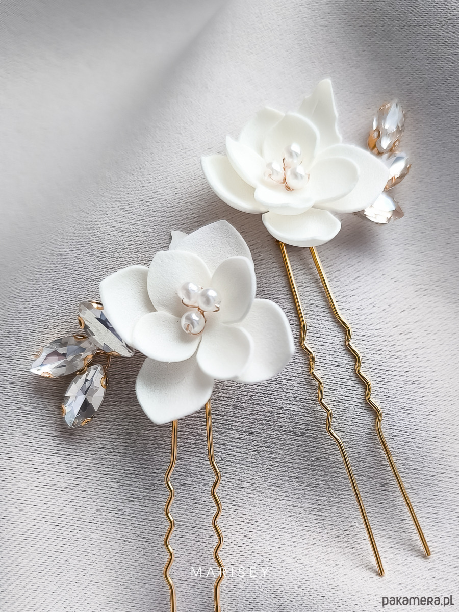 Kokówki do włosów z kwiatkami i kryształkami Zari