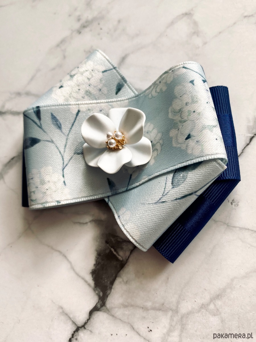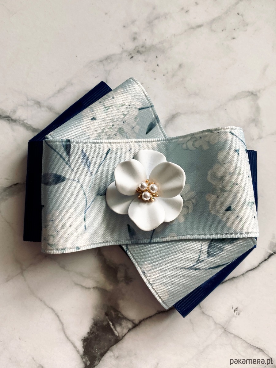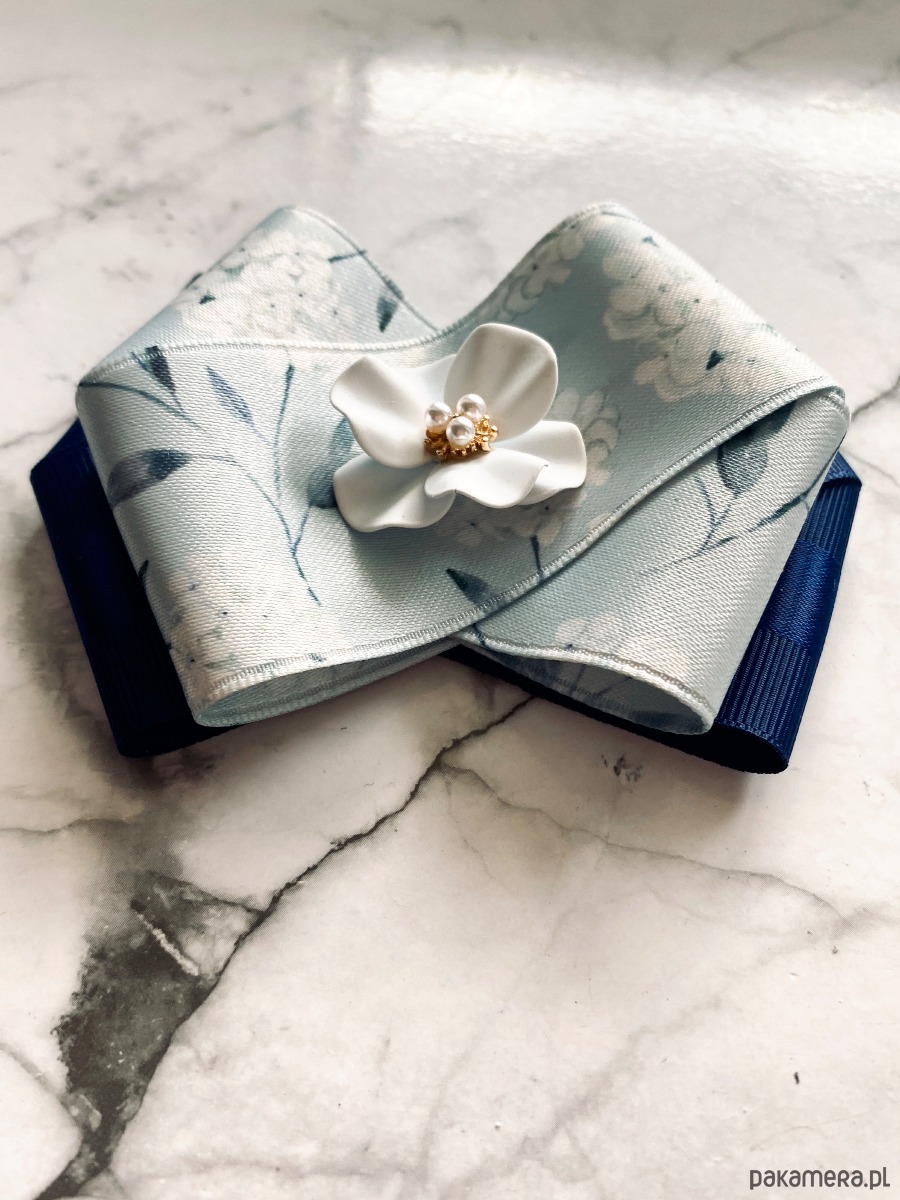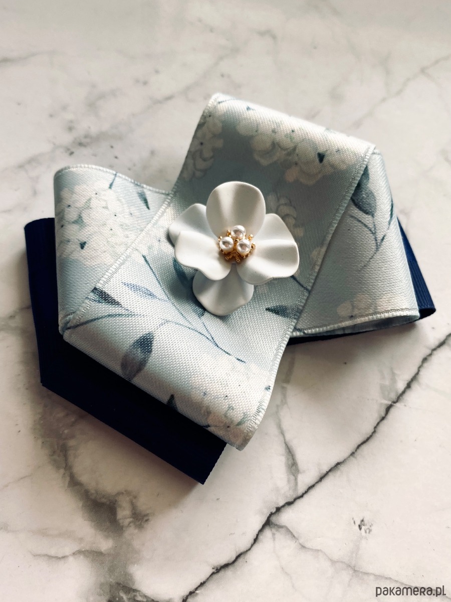 Broszka wykonana z wysokiej jakości taśm i dodatków.