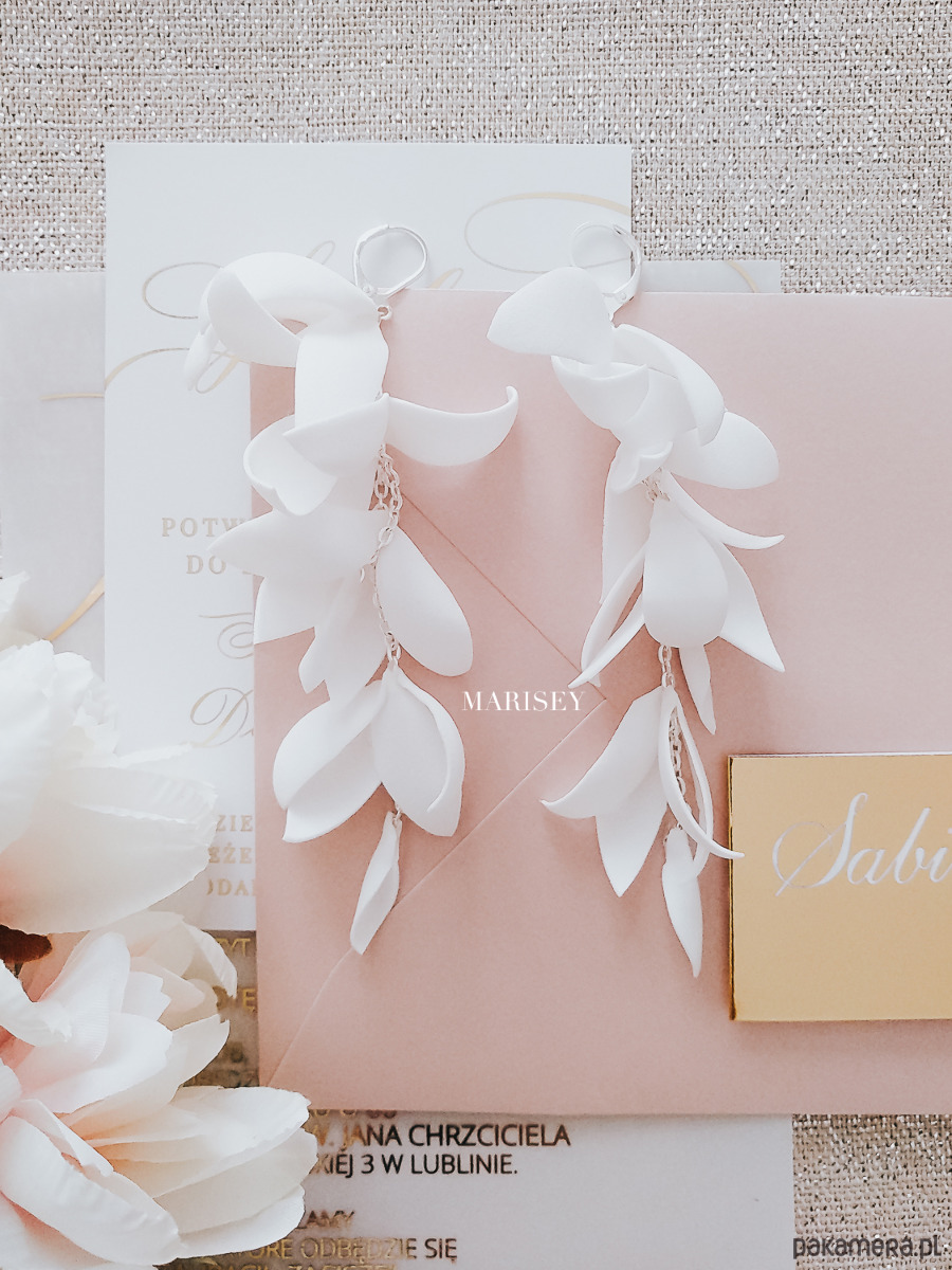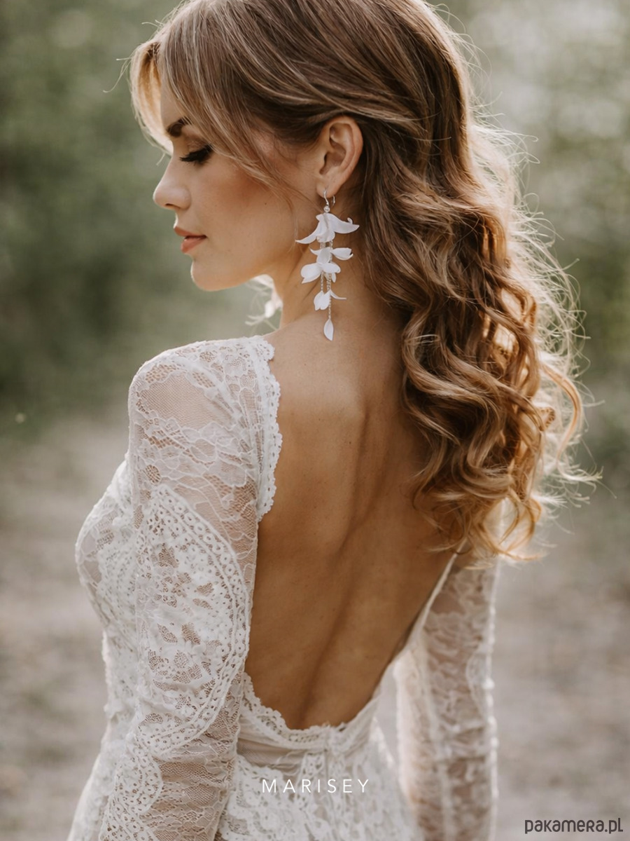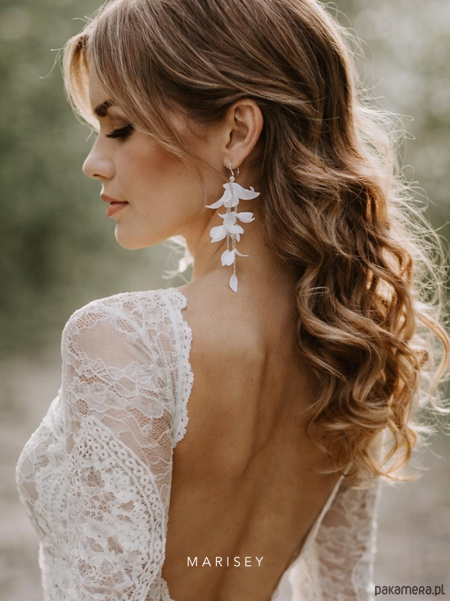 Kwiatowe długie wiszące kolczyki ślubne Liz