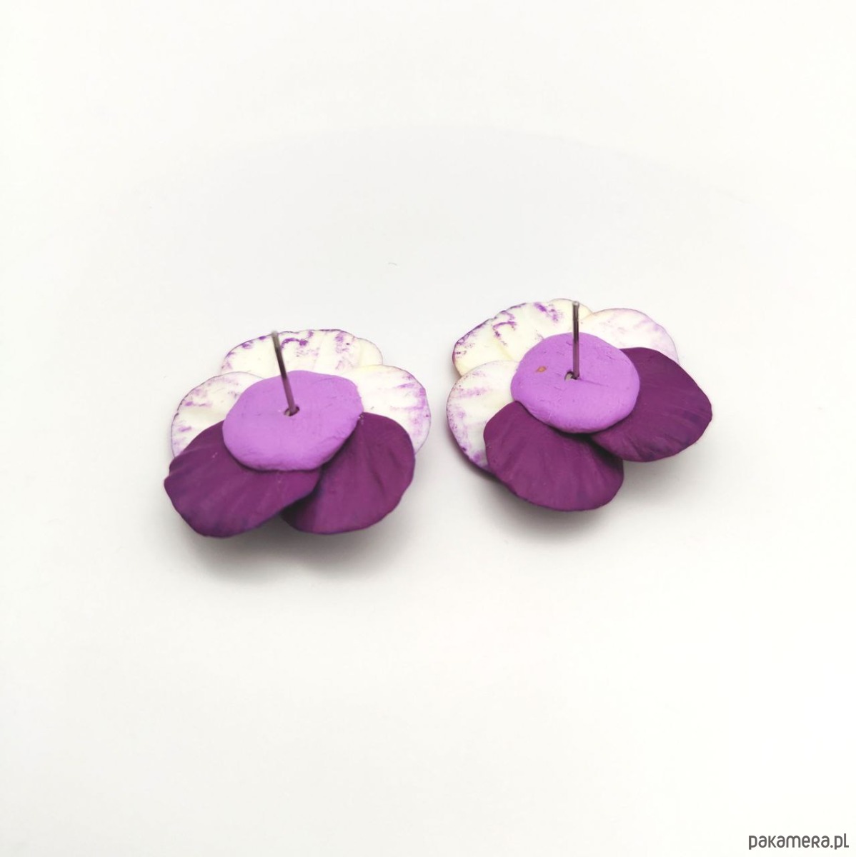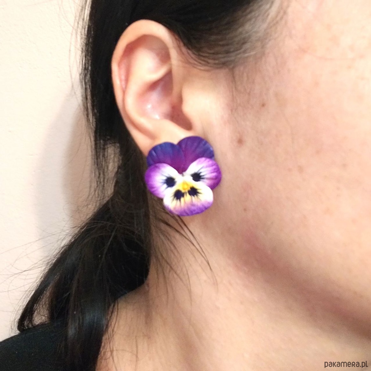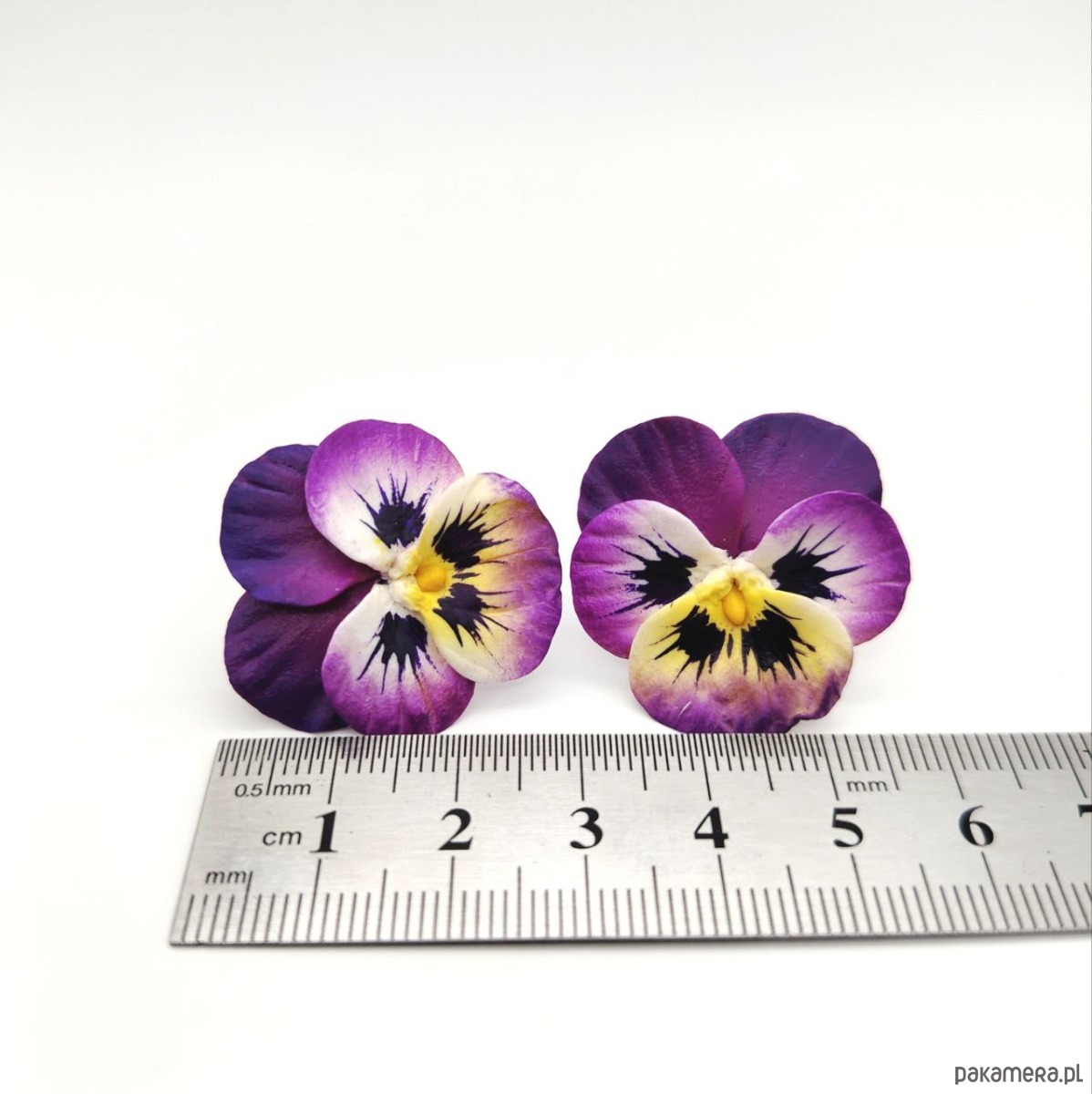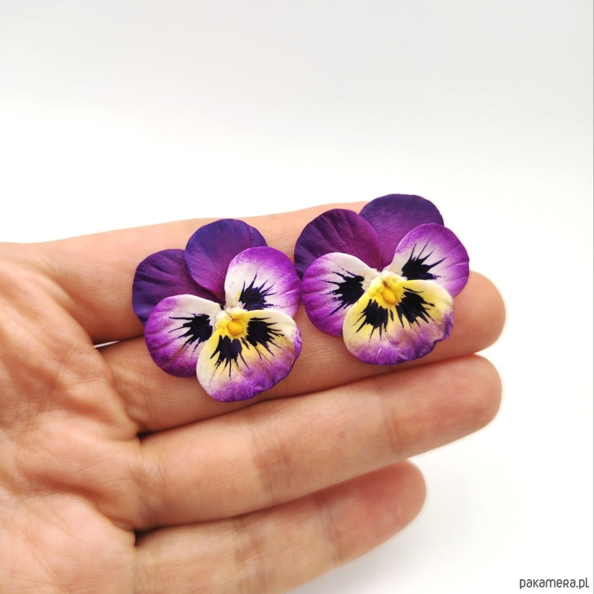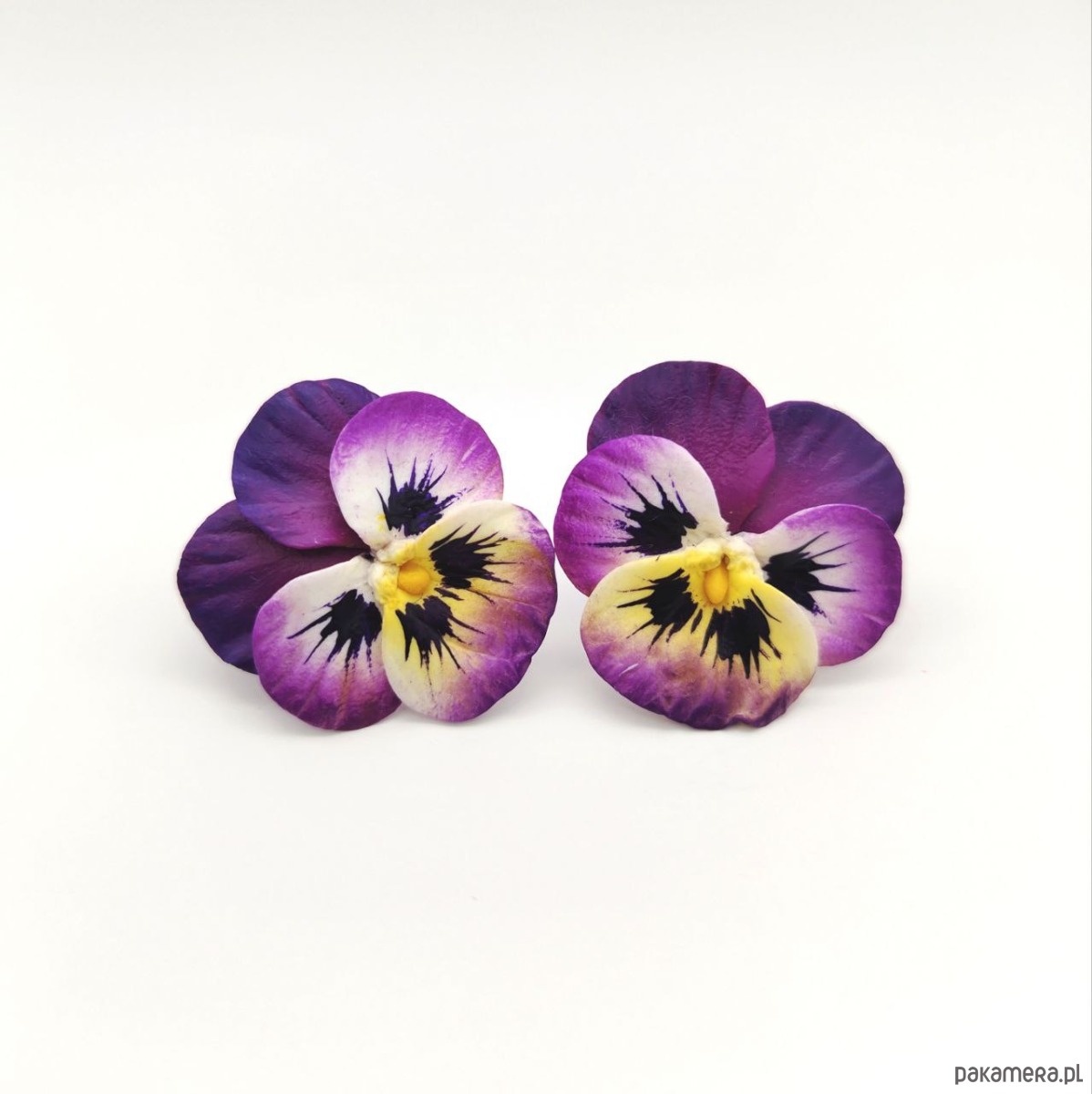 Kwiatowe kolczyki sztyfty z polimerowej gliny Bratki, biżuteria kwiatowa