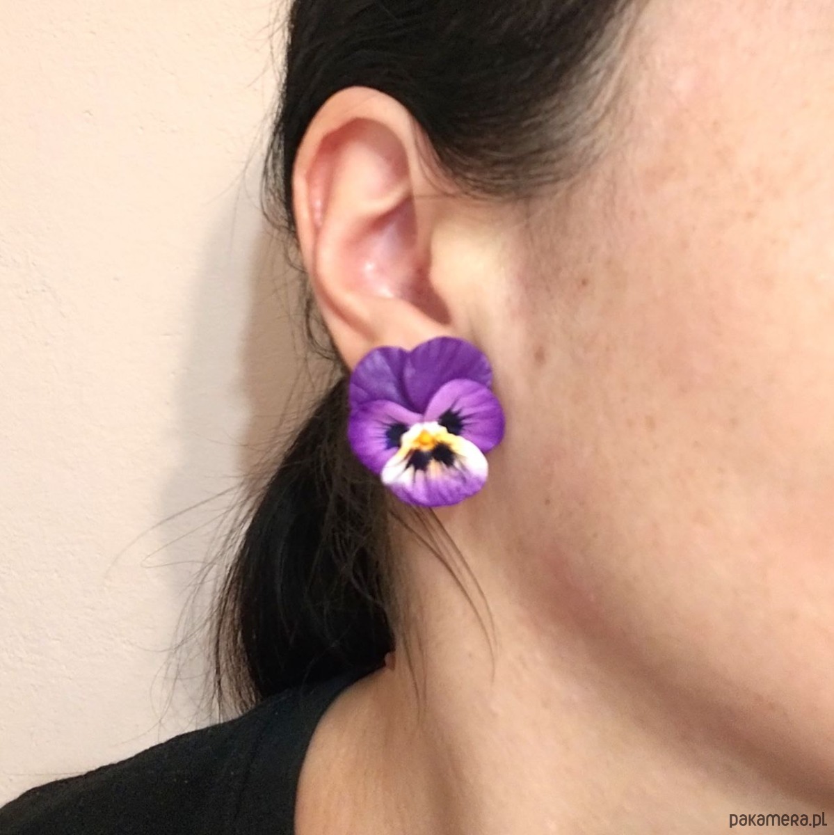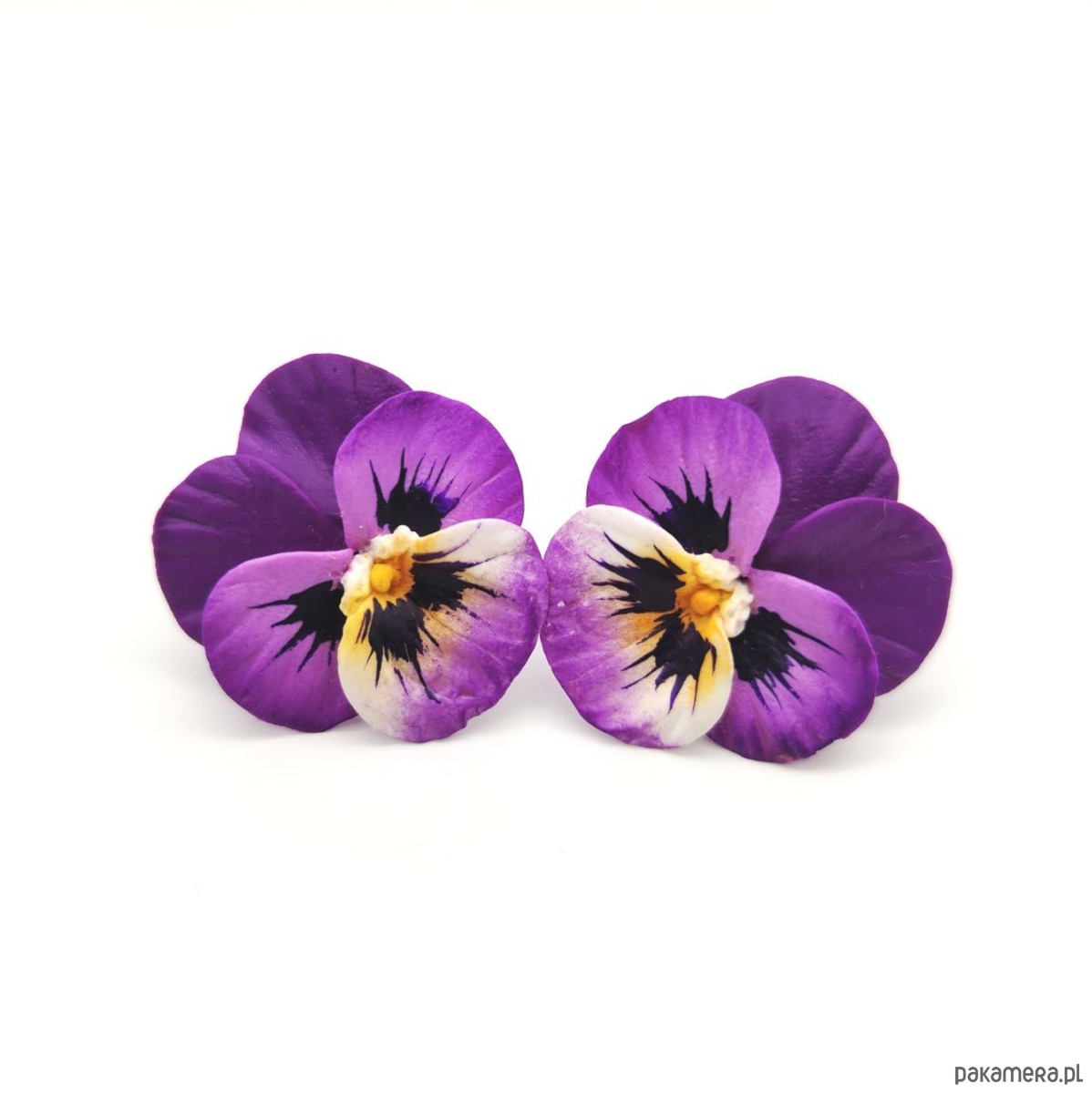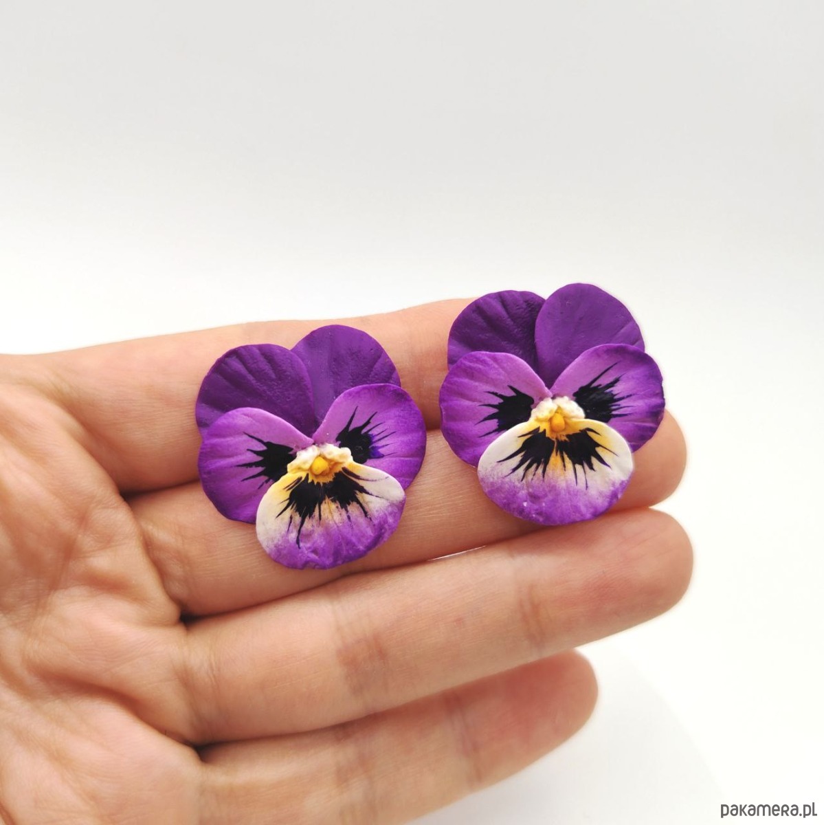 Kwiatowe kolczyki sztyfty z polimerowej gliny Bratki, biżuteria kwiatowa