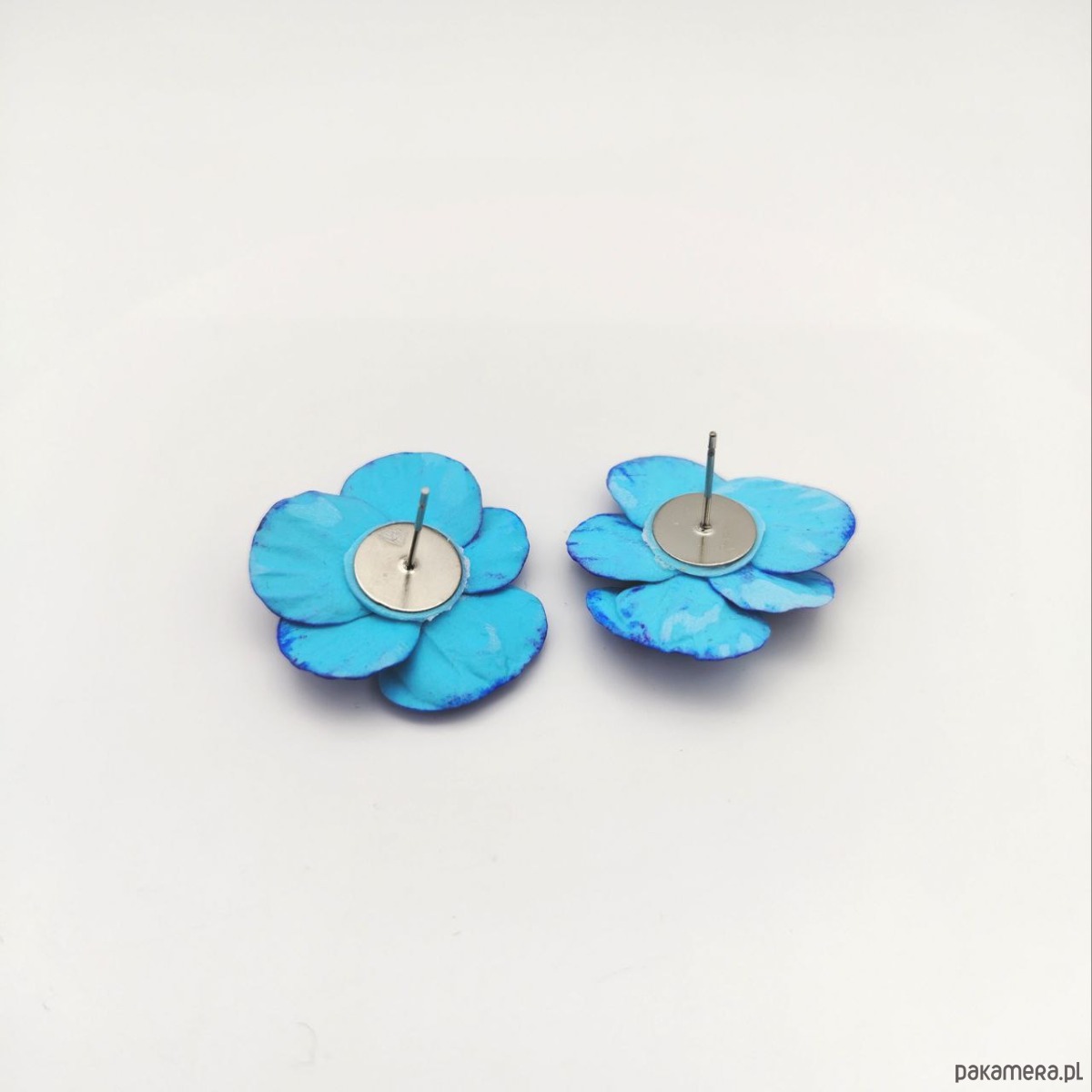 Kolczyki-sztyfty wykonane z trwałej termoutwardzalnej gliny polimerowe Cernit. Każdy element jest ręcznie formowany i malowany, dzięki czemu zachowuje unikatowy charakter niezależnie od koloru. Powierzchnia zabezpieczona matowym lakierem. Fittings to elementy jubilerskie z nierdzewnej stali, bezpieczne dla skóry.
