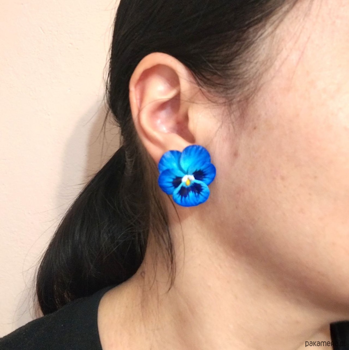 Kwiatowe kolczyki sztyfty z polimerowej gliny Bratki, biżuteria kwiatowa