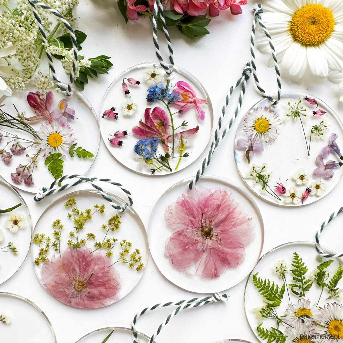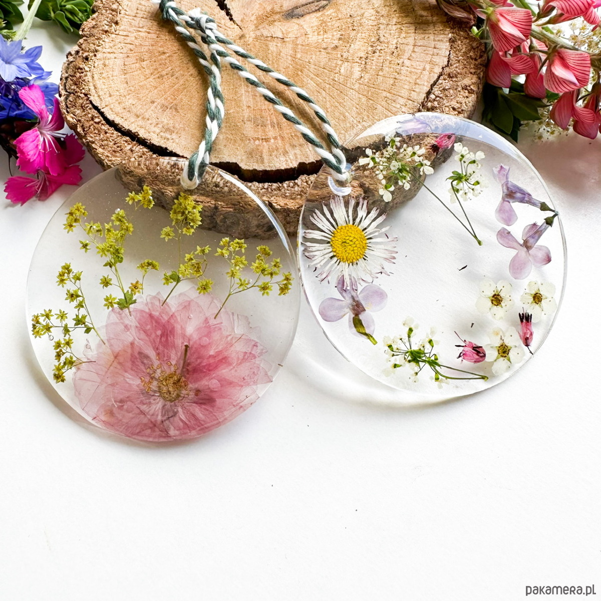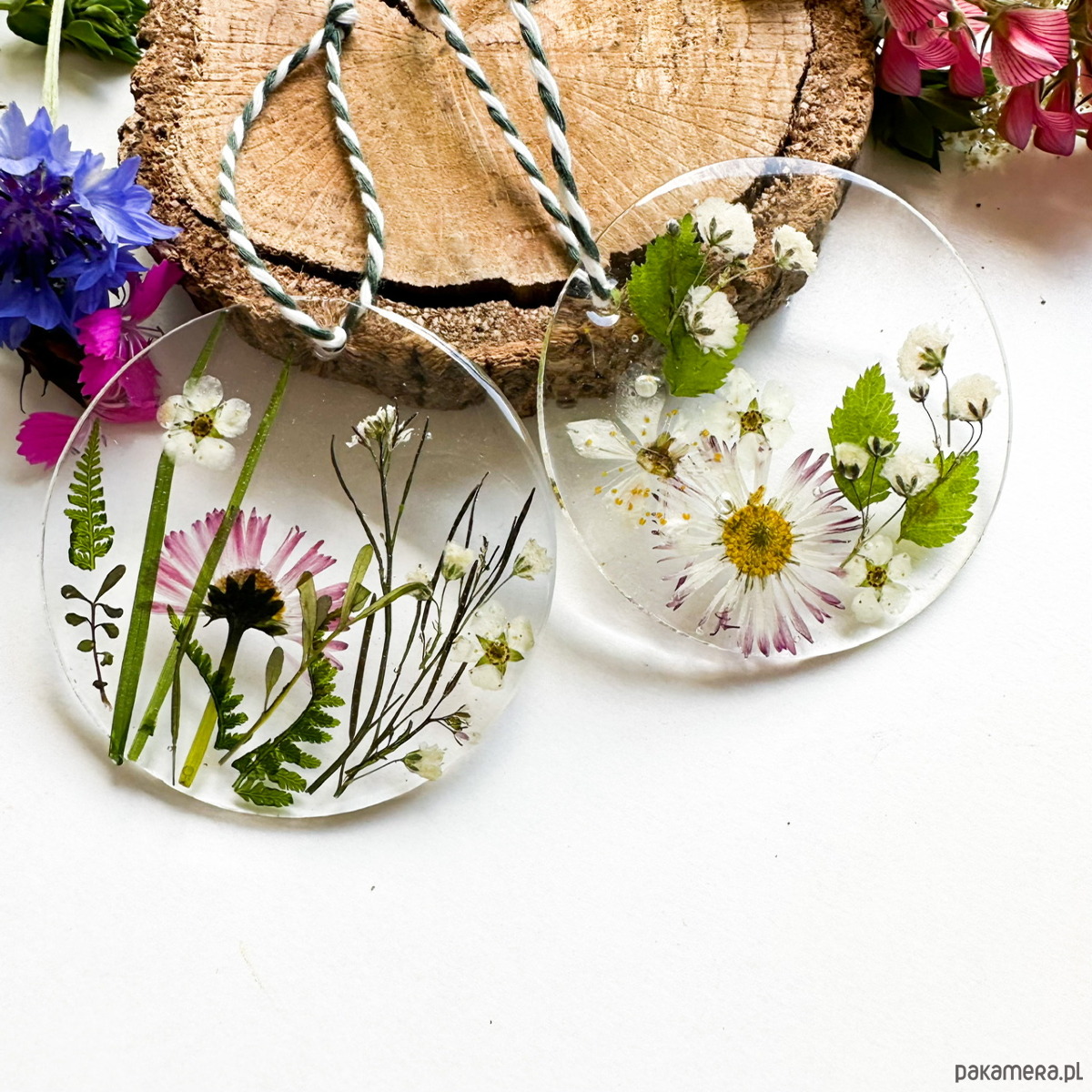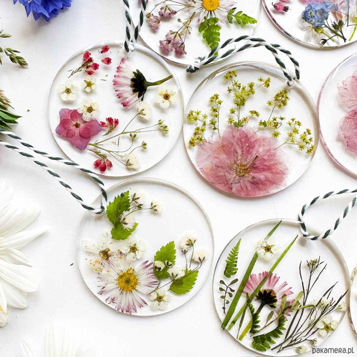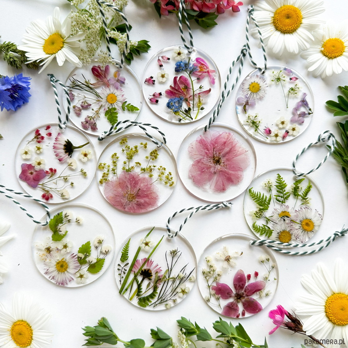 Niepowtarzalne, ręcznie robione bombki z pokrytymi żywicą suszonymi kwiatami. Zestaw zawiera 10 sztuk bombek wykonanych z pleksi (zatem nie da się ich stłuc). To świetny pomysł na niebanalny, wyjątkowy prezent- na życzenie klienta mogę dołączyć karteczkę z dedykacją.