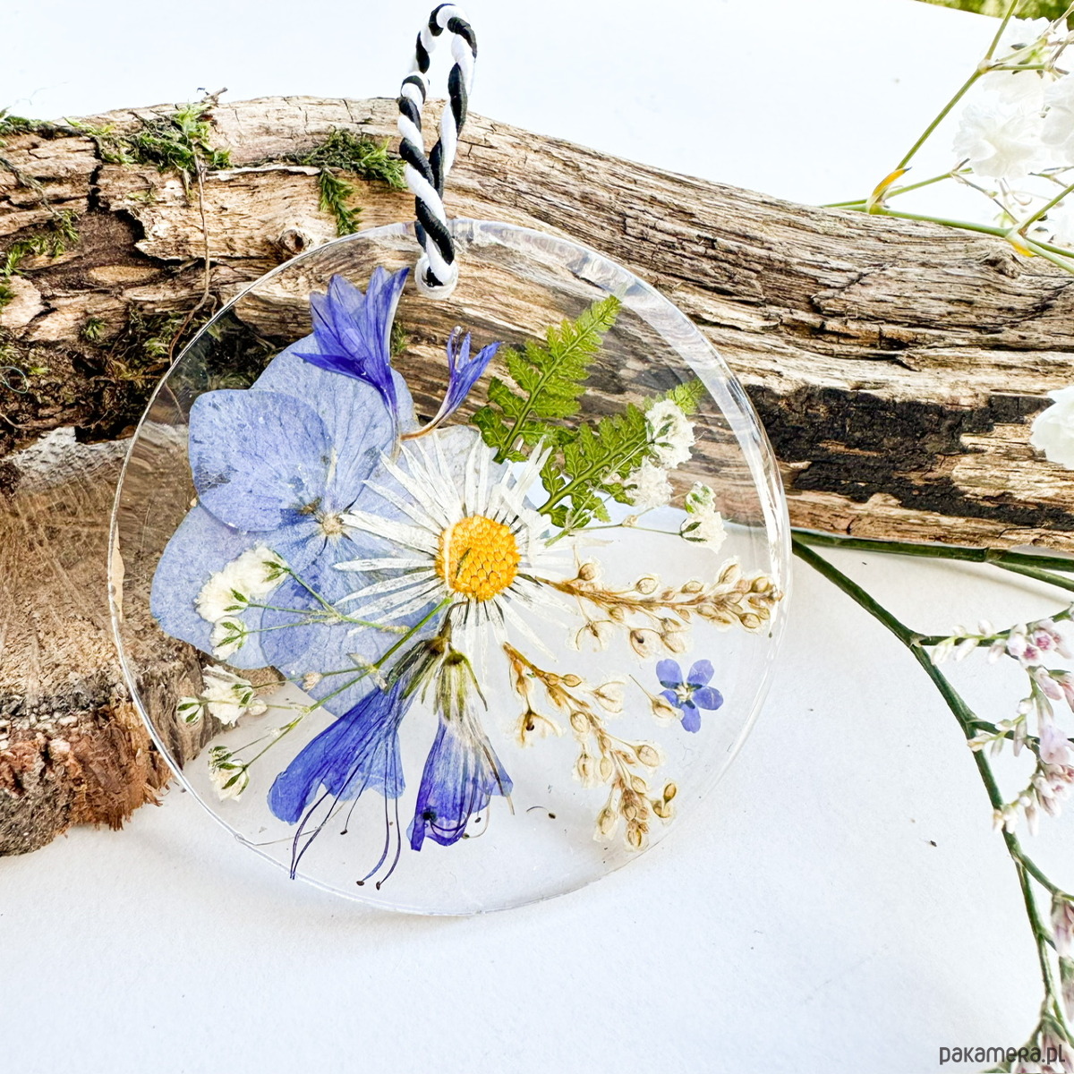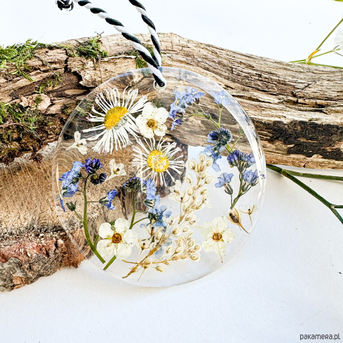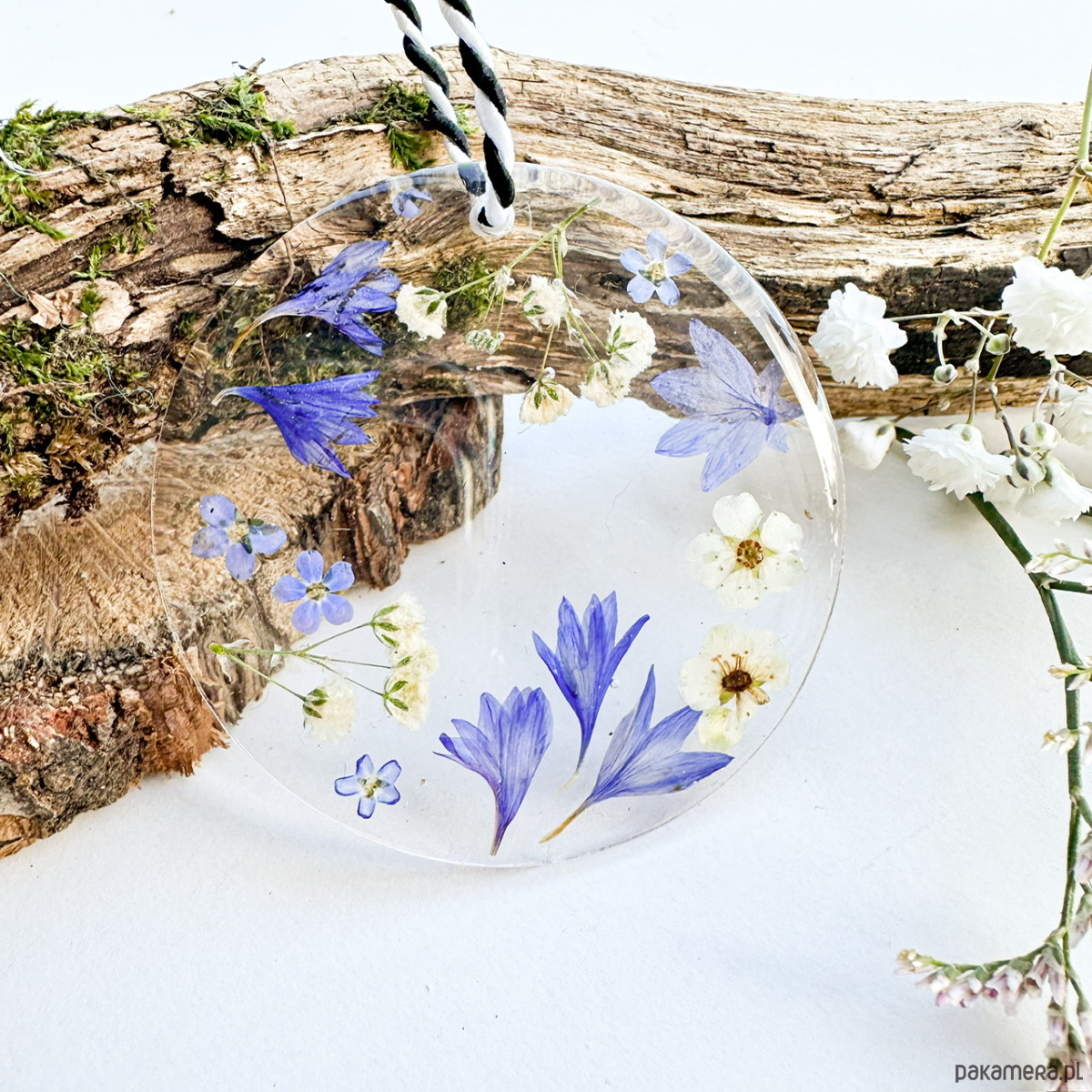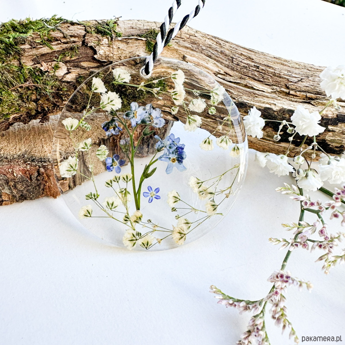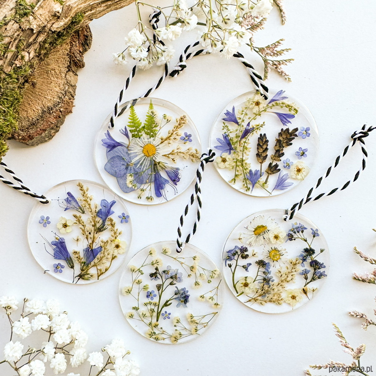 Niepowtarzalne, ręcznie robione bombki z pokrytymi żywicą suszonymi kwiatami. Zestaw zawiera 5 sztuk bombek wykonanych z pleksi (zatem nie da się ich stłuc). To świetny pomysł na niebanalny, wyjątkowy prezent- na życzenie klienta mogę dołączyć karteczkę z dedykacją.