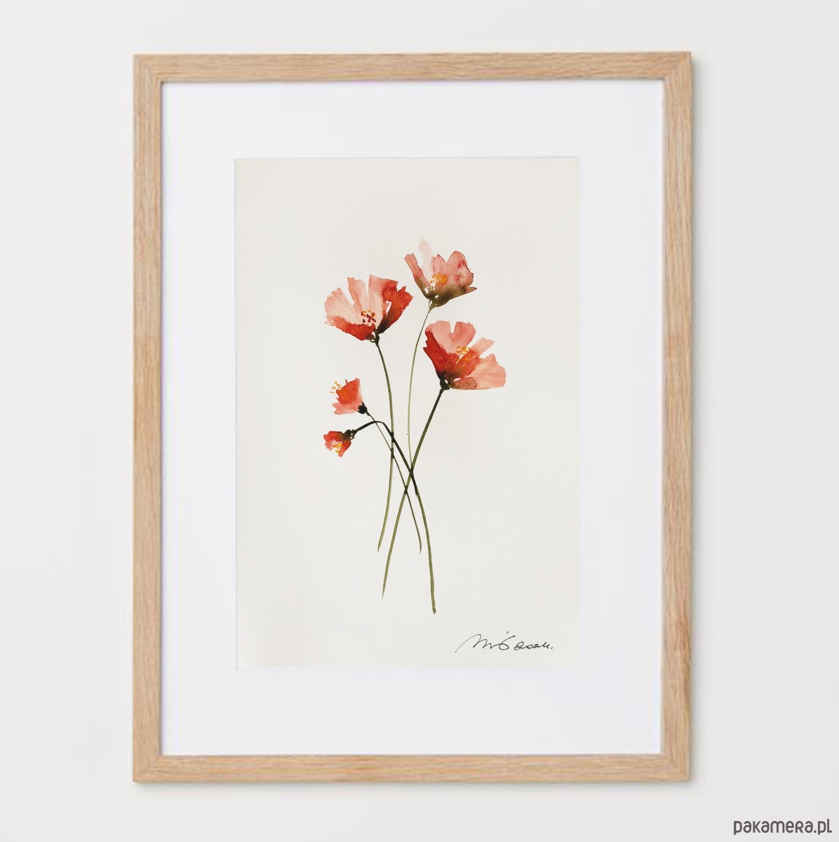 Obraz kwiatowy wykonany techniką akwareli na gładkim białym papierze o gramaturze 300.