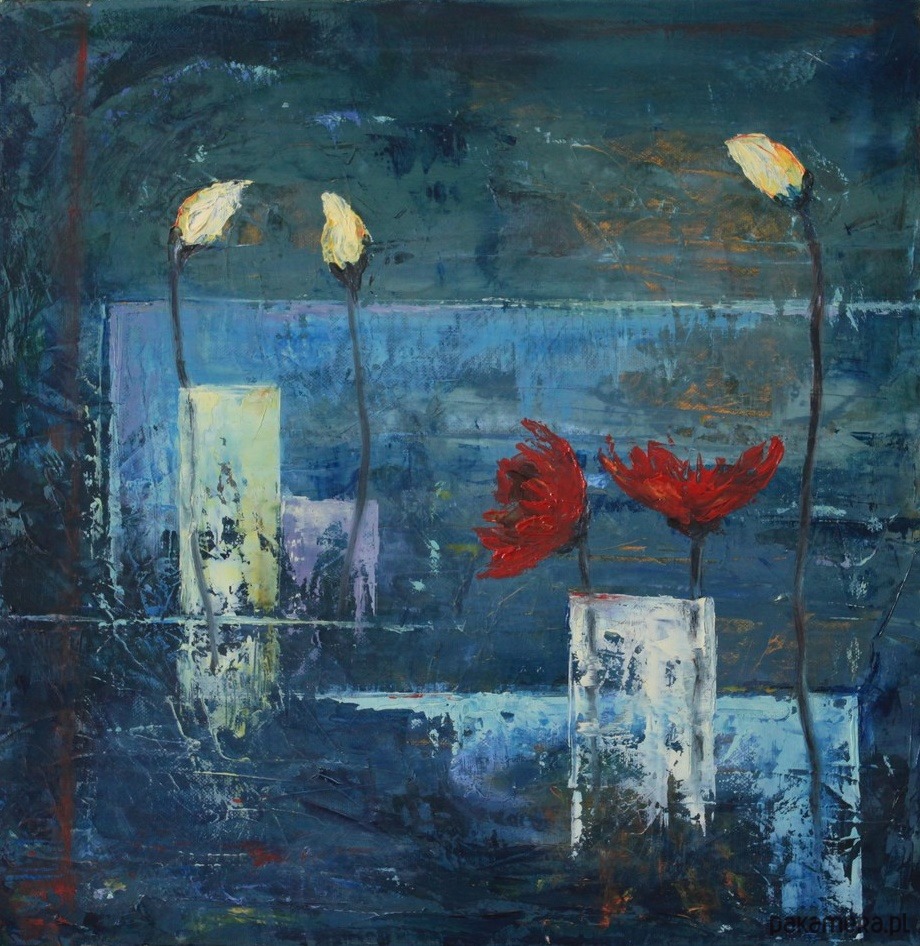 Autorski obraz olejny "Kwiaty II". Wymiary 40 cm x 40 cm. Płótno na sosnowym blejtramie. Sygnowany. Obraz ma zamalowane boki. Do obrazu dołączony Certyfikat autentyczności.