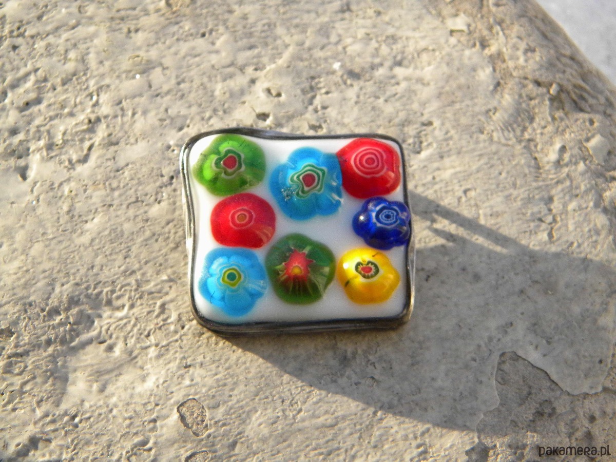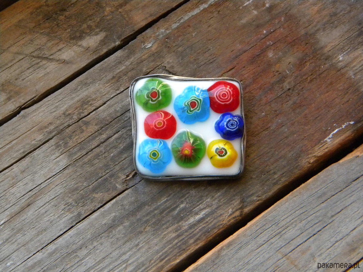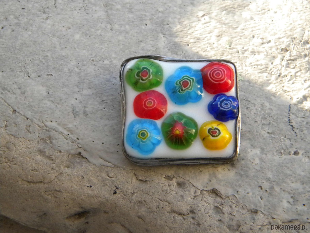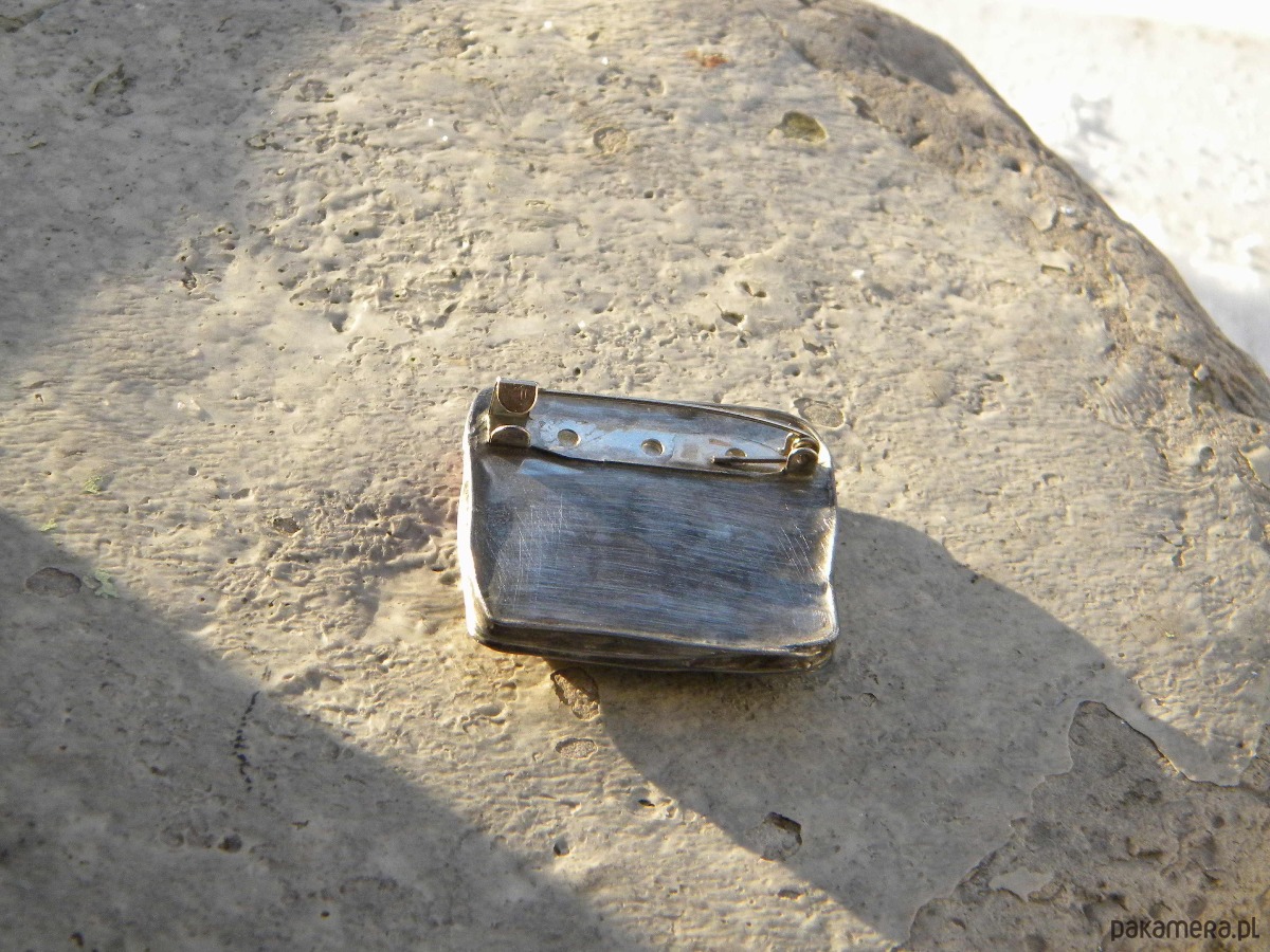broszka ze szkła oprawionego w ocynowaną miedz.