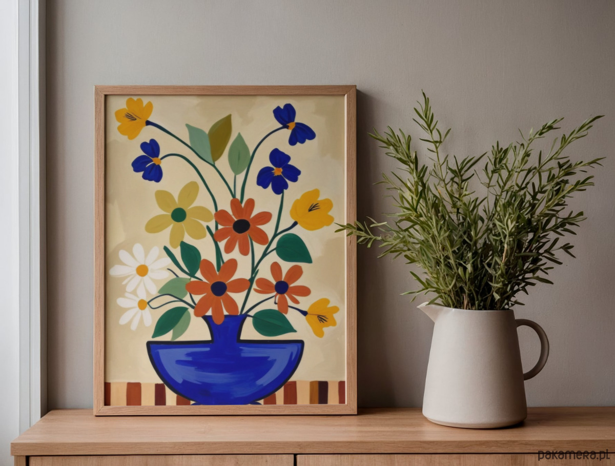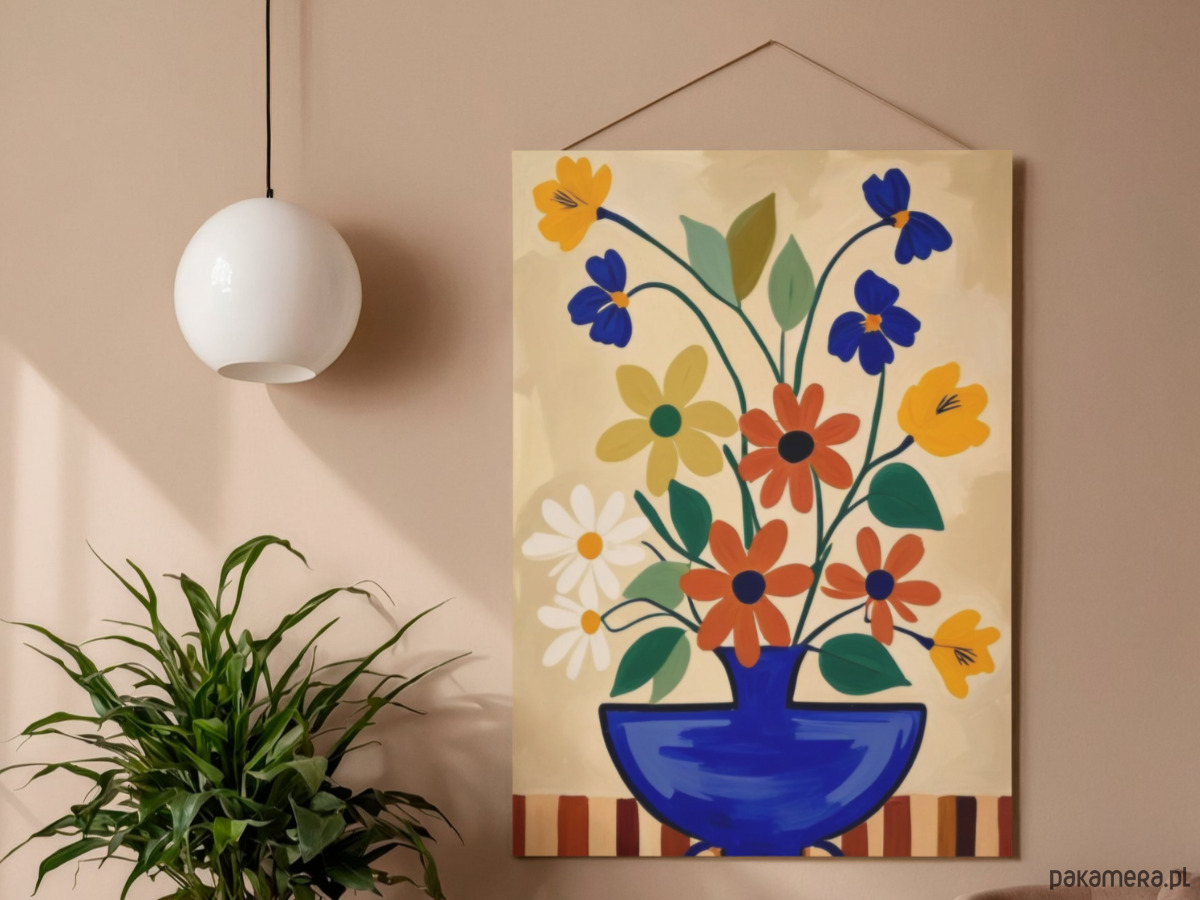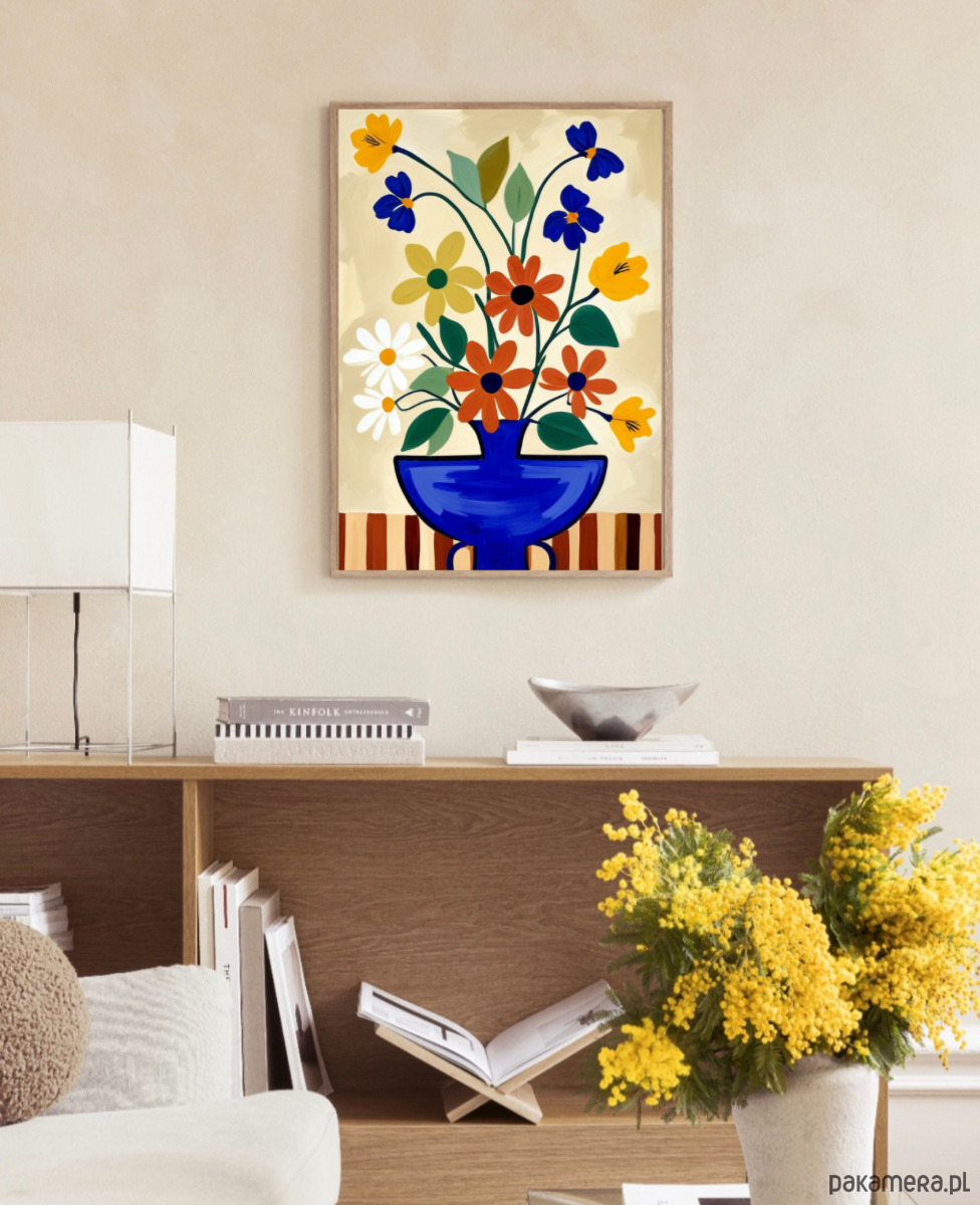 Kwiaty w wazonie grafika, kolorowa dekoracja ścienna, plakat,