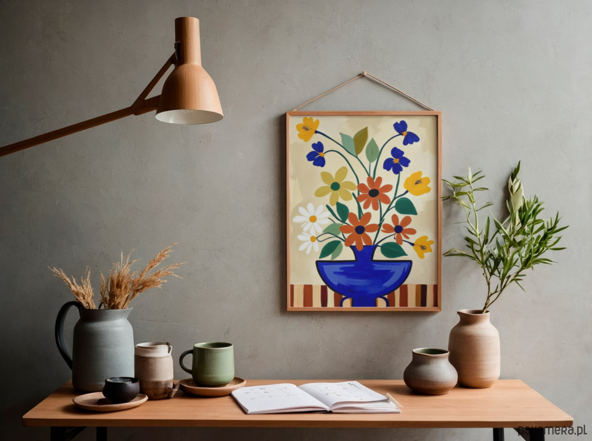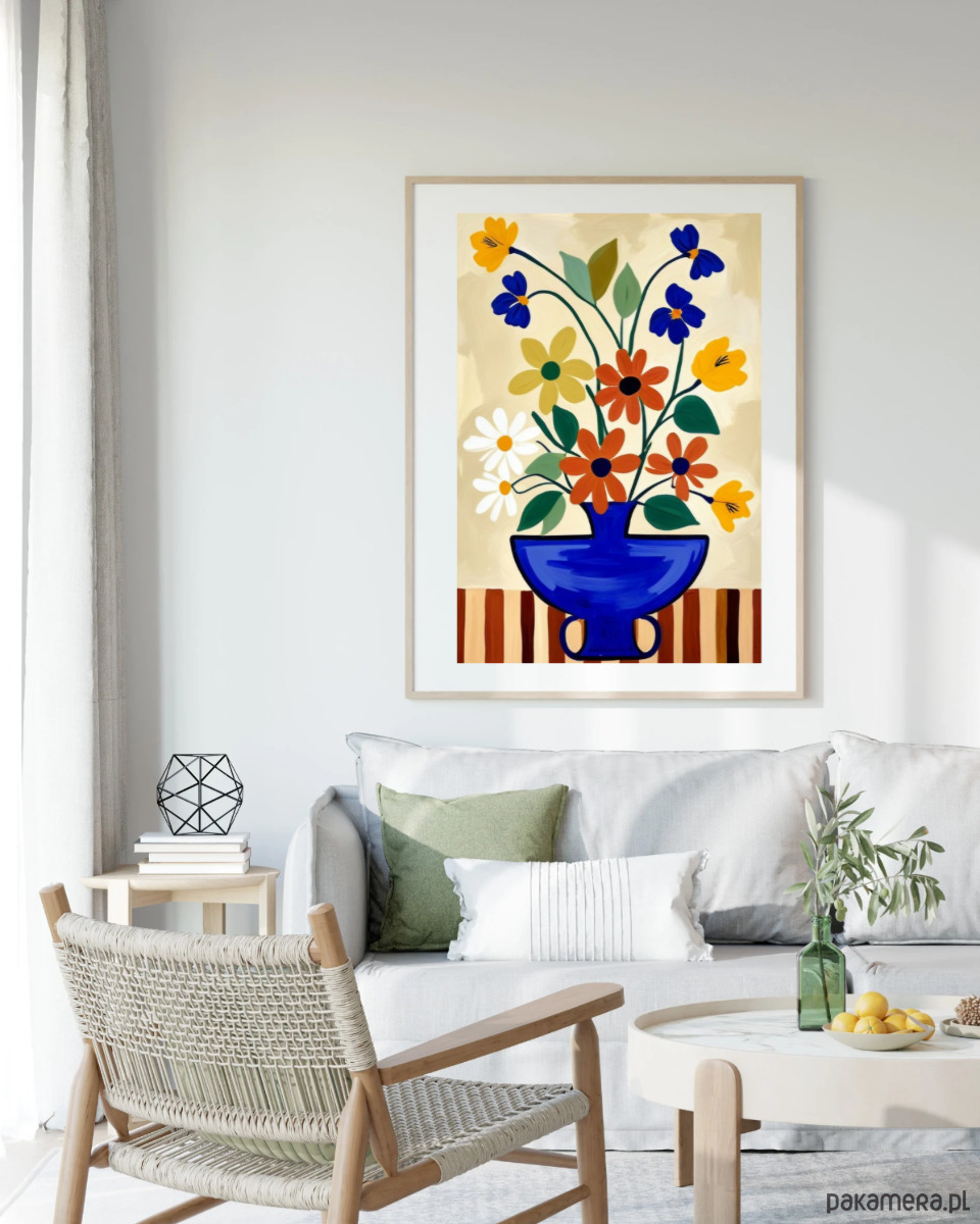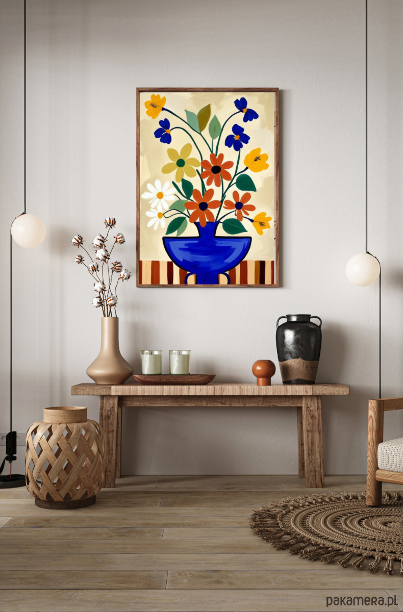 Kwiaty w wazonie grafika, kolorowa dekoracja ścienna, plakat,