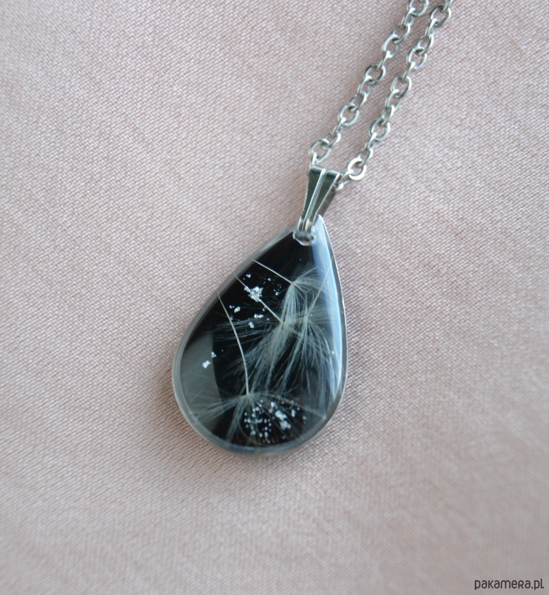 Materiał: stal szlachetna (nierdzewna), żywica epoksydowa, ususzony kwiat;