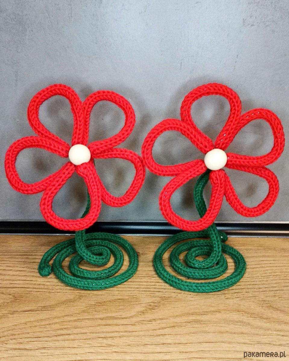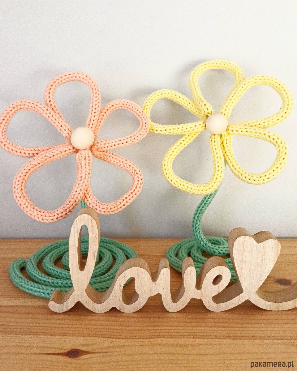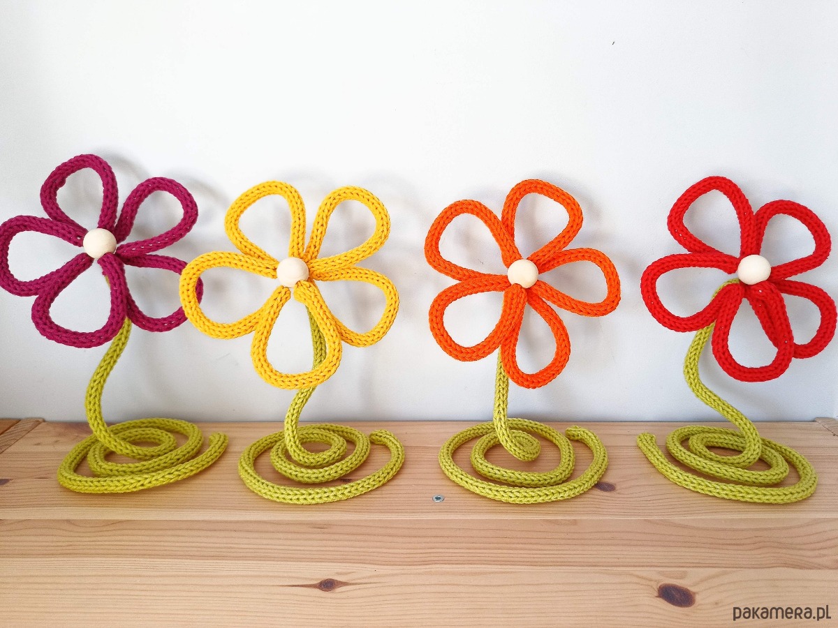 Kwiaty z podstawką z włóczki