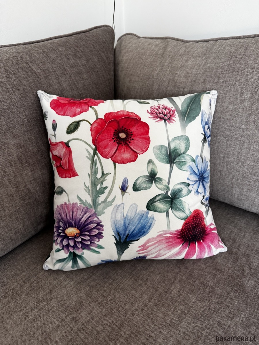 Wielobarwna poszewka dekoracyjna w kwiaty wprowadzi do Twojego wnętrza niepowtarzalny, wiosenny klimat. Poszewka na zamek.