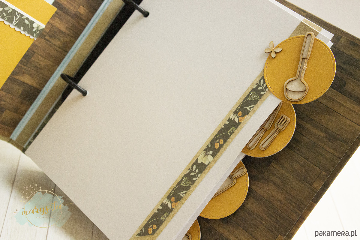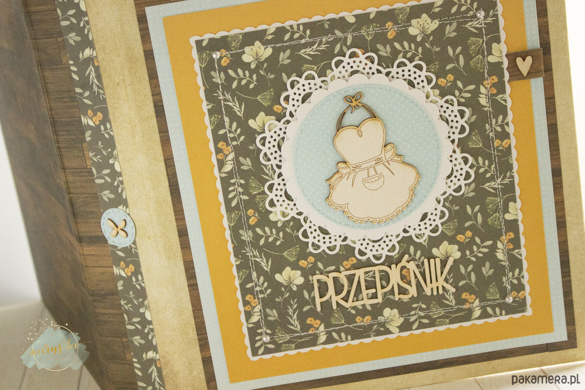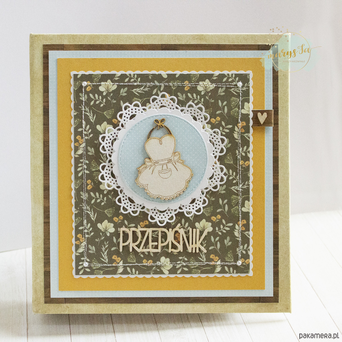 Uroczy przepiśnik z ozdobnym fartuszkiem na froncie - czyli przyjemna opcja na gromadzenie smakowitych przepisów.