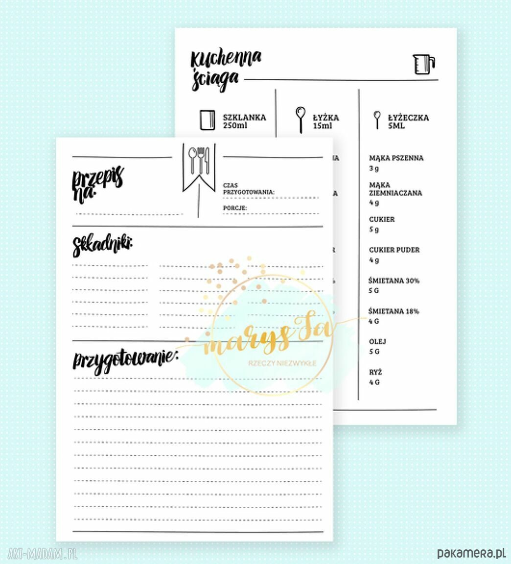 Przepiśnik z 4 przekładkami, w środku kieszonka, ściąga z miar na końcu oraz ok 100 kartek z nadrukiem. Całość w wersji segregatora z możliwością dowolnej rotacji kartek.