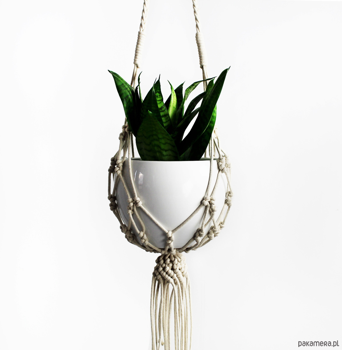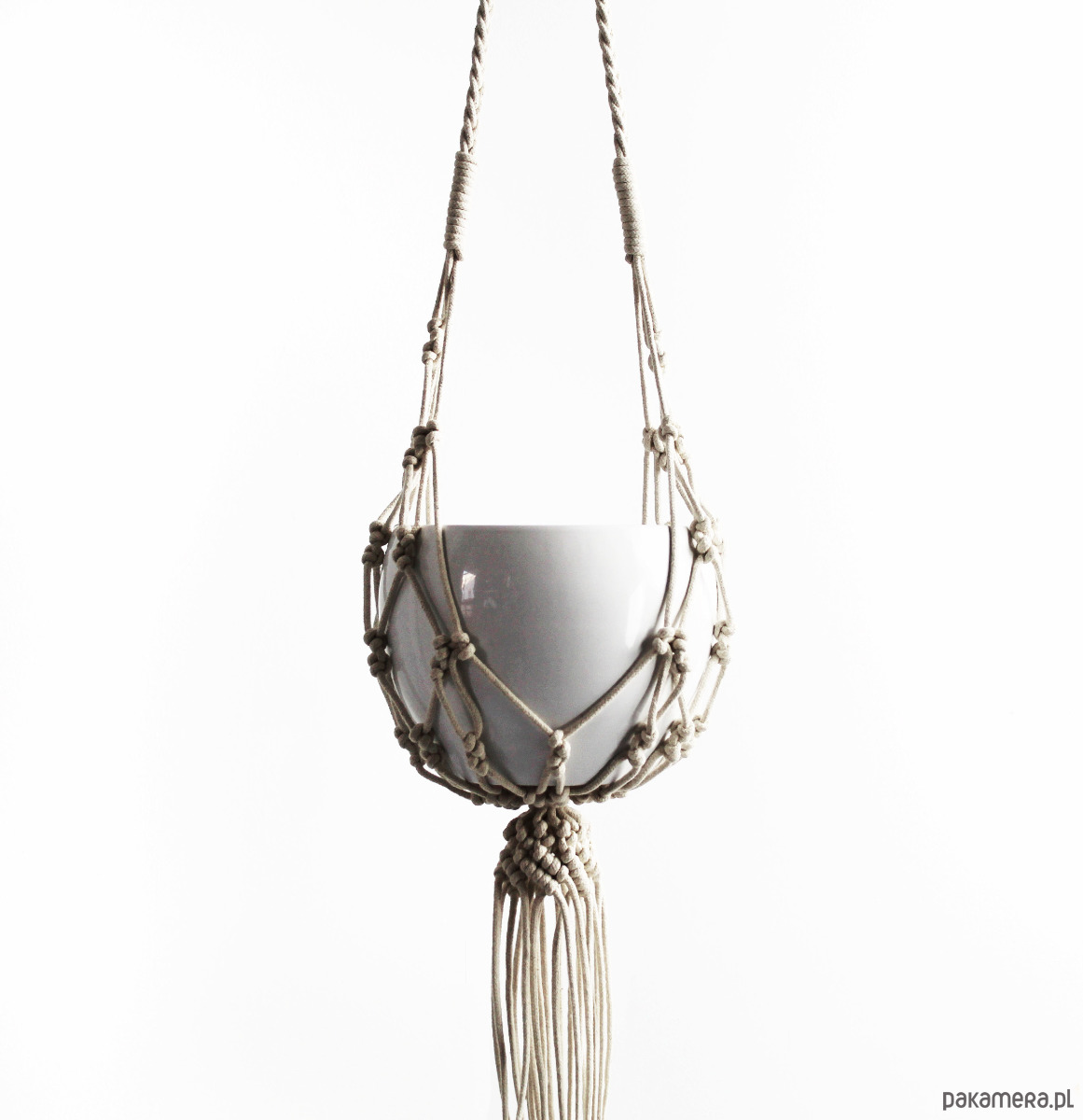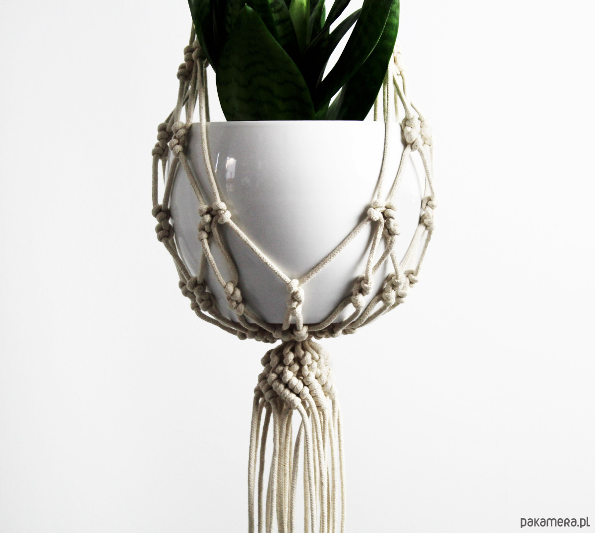 GISELLE. Kwietnik wyplatany ręcznie techniką makramy.