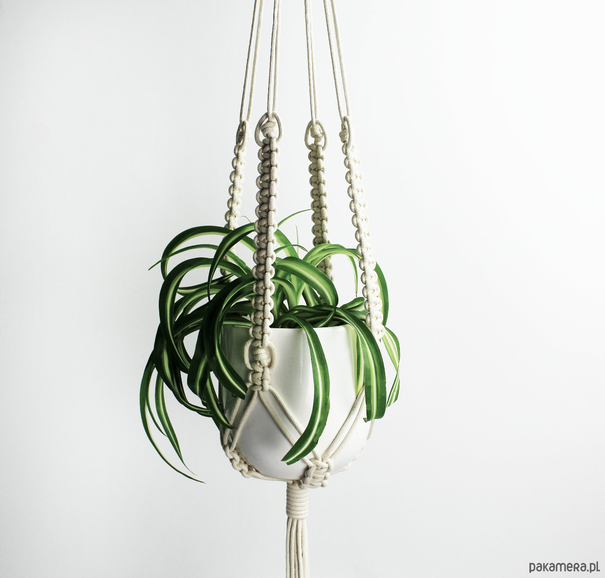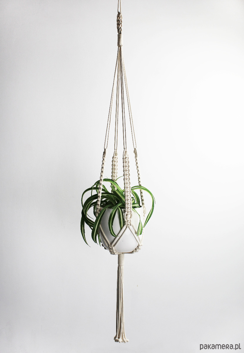 długość całkowita (od góry do końca frędzli, z doniczką w środku): 125 cm
