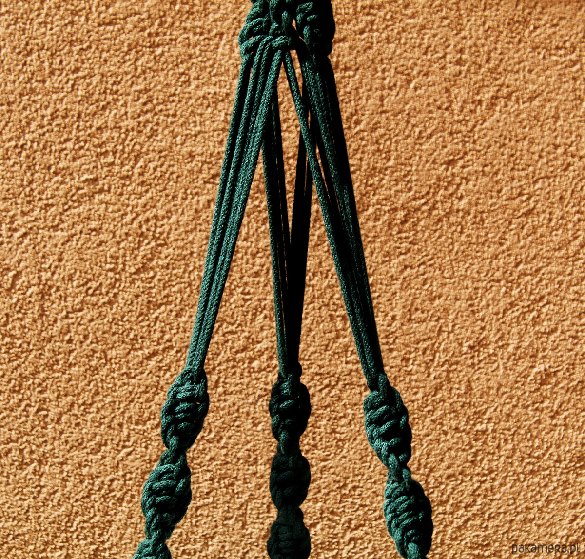 'KAROLINA'. Kwietnik wyplatany ręcznie ze sznurka bawełnianego (techniką makramy).