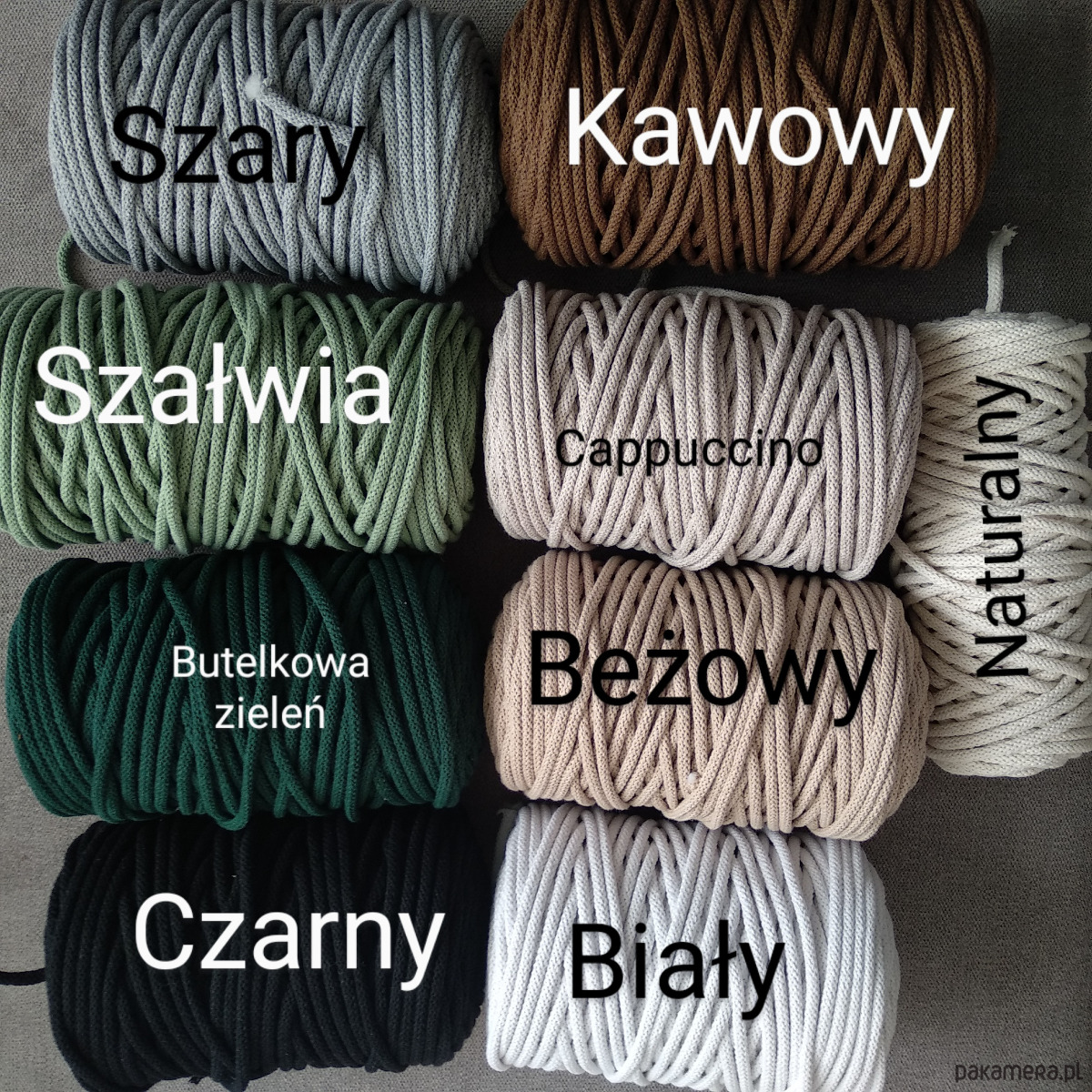 * Materiał: sznurek pleciony (produkowany w Polsce) gr.5mm, bawełna z poliestrowym rdzeniem.
