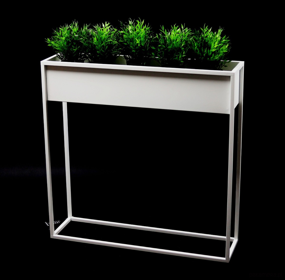 Kwietnik wykonany został z profila metalowego 15x15mm, a następnie pomalowany proszkowo na kolor biały matowy. Solidna konstrukcja sprawia, że jest bardzo stabilny i wytrzymały. Całość prezentuje się bardzo estetycznie, została wykonana z najwyższą starannością. Dzięki zastosowaniu techniki malowania proszkowego kwietnik jest odporny na uszkodzenia.