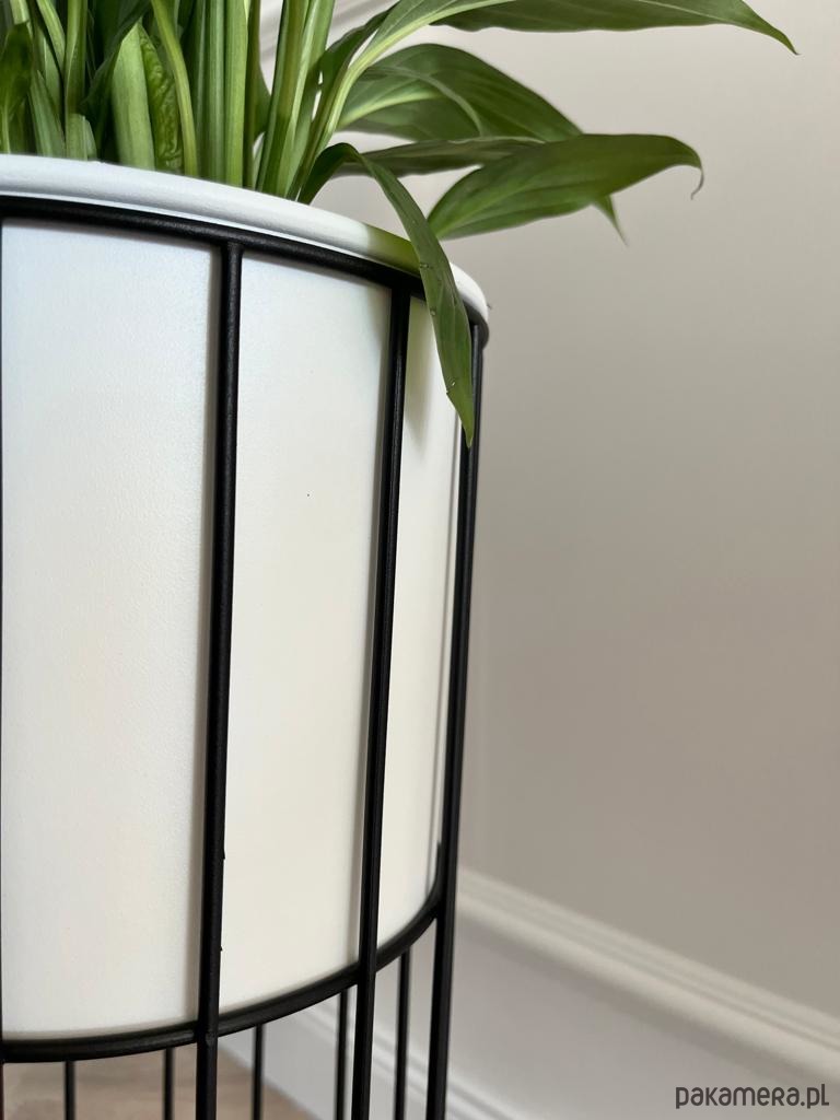 Pojedynczy kwietnik metalowy stojący z białą osłonką Nowoczesny Design LOFT wysokość 71 cm