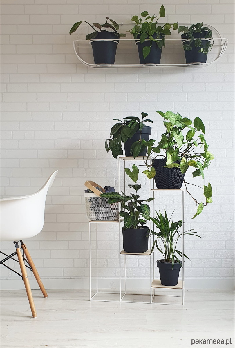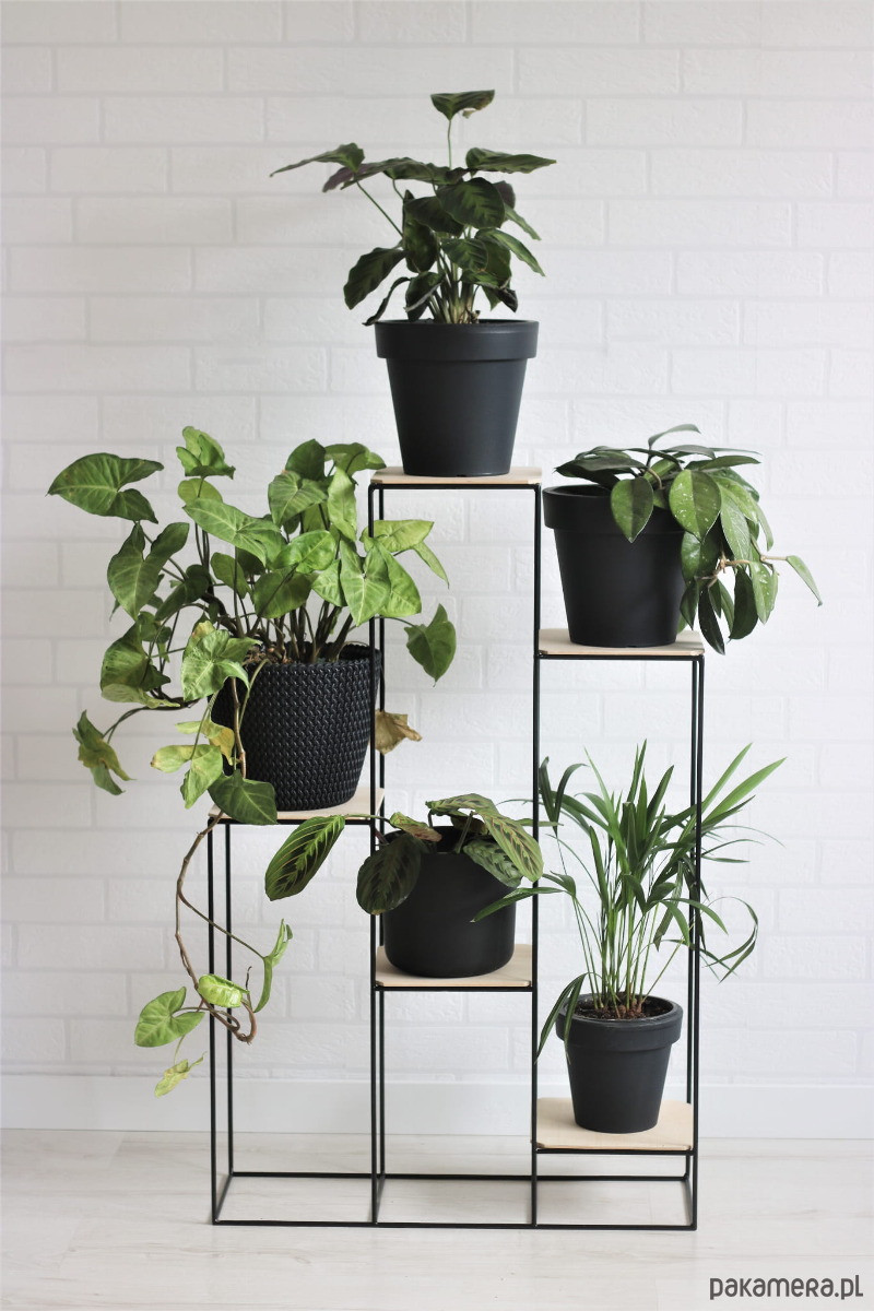 Inspiracją w tworzeniu tego modelu bez wątpienia były wieżowce. W projekcie zastosowaliśmy ażurową konstrukcję z prętów co finalnie pozwoliło nam uzyskać lekki w odbiorze wielofunkcyjny stojak na rośliny. Kwietnik może pełnić również funkcję małego regału, który udekorujecie dodatkami wnętrzarskimi według własnych potrzeb.