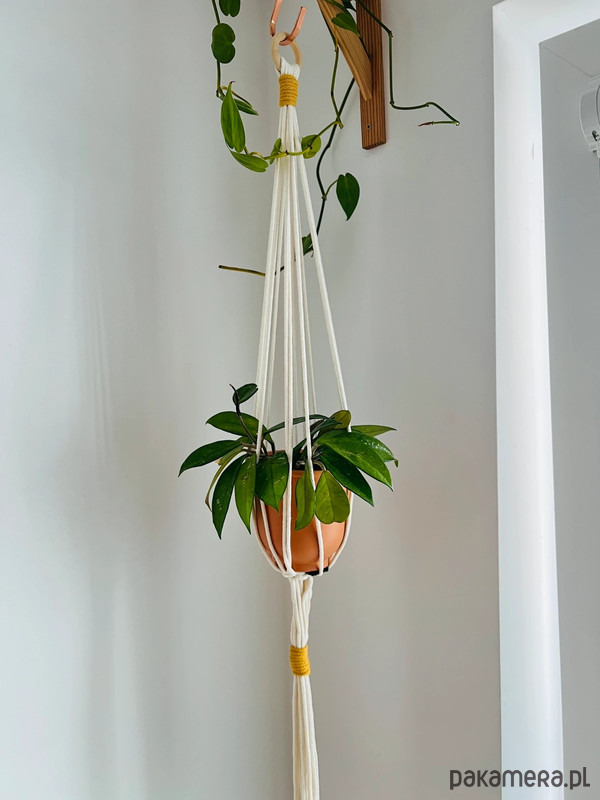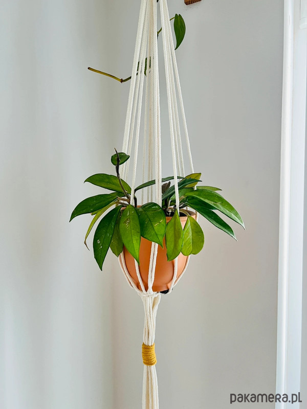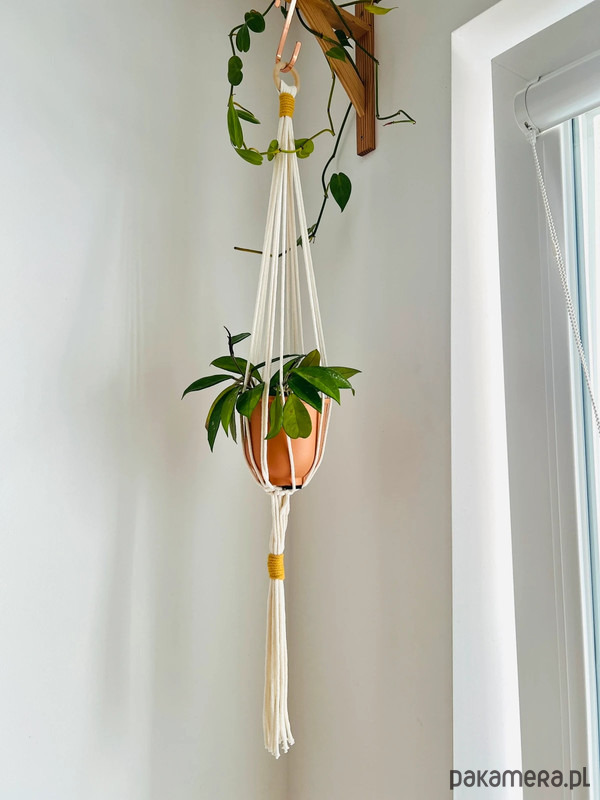 Kwietnik został ręcznie wykonany z użyciem sznurka bawełnianego dla doniczki o wymiarach 13-20 cm.