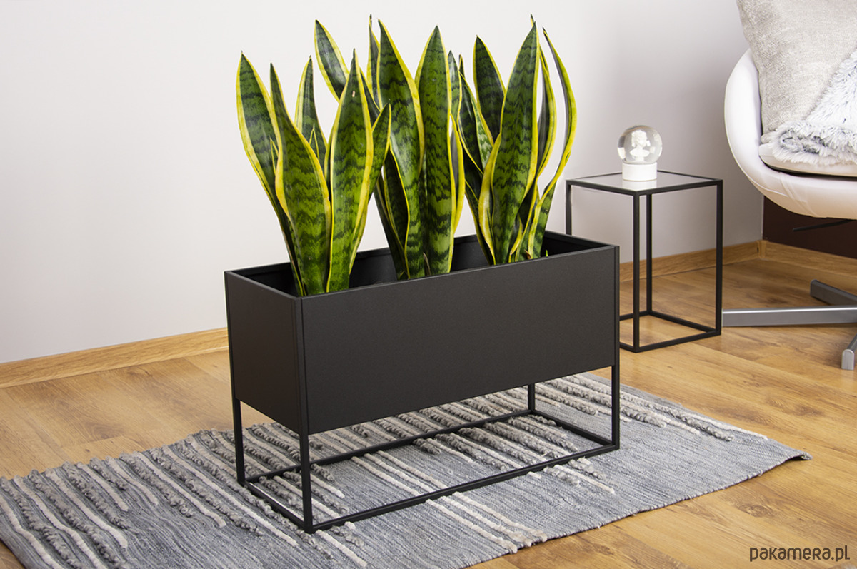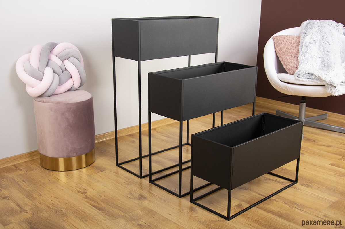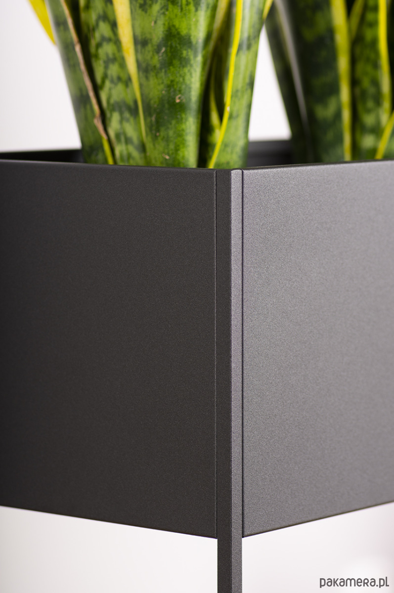 Długi na 60 cm, nowoczesny kwietnik metalowy z donicą wykonany został ze stali malowanej proszkowo, trwałej i odpornej. Charakteryzuje się precyzją wykonania: doskonała jakość spawów dokładnie wyszlifowanych i wypolerowanych oraz idealne zgrzanie donicy z nóżkami to znak charakterystyczny tego wyrobu.
