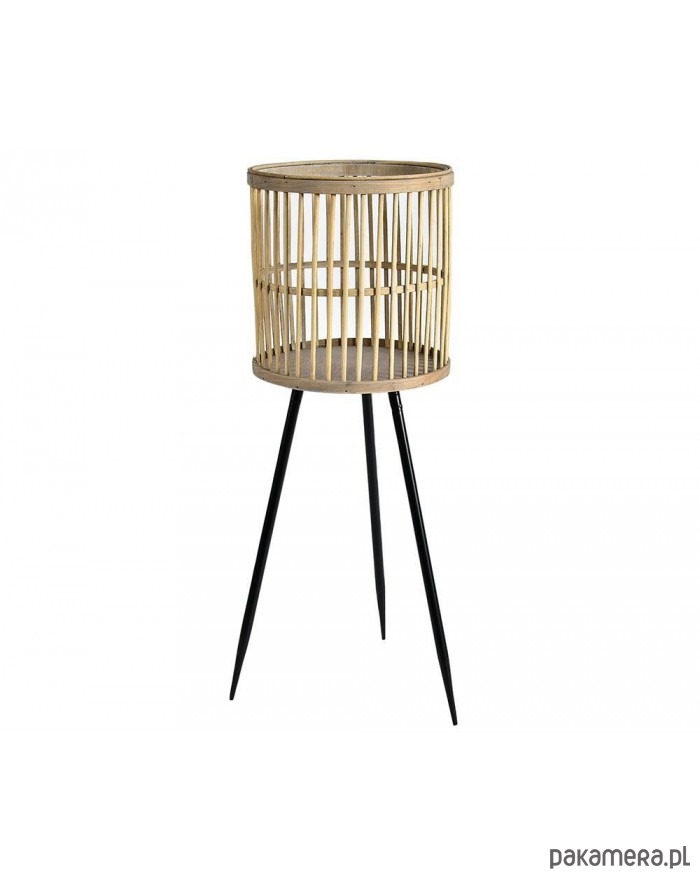 Bardzo ciekawy kwietnik z osłonką wykonaną z bambusa. Podstawa to metalowy trójnóg w kolorze czarnym.