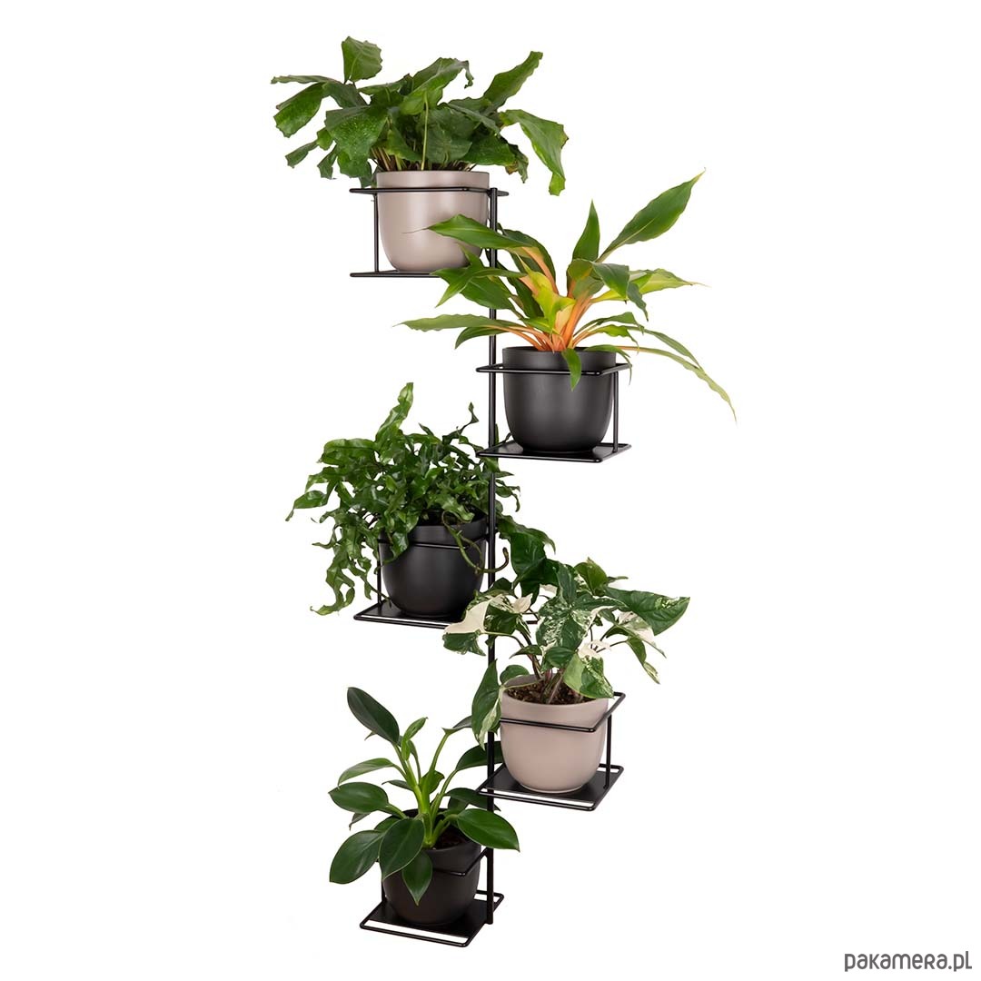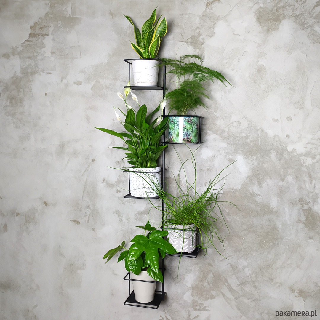 Jeszcze więcej zieleni na Twojej ścianie!! Nasz kwietnik Dżungla 3 to najwyższy poziom nowego trendu urban jungle, który docenią wszyscy miłośnicy domowej zieleni. Autorski projekt Domowych Kwietników pozwoli Ci wzbogacić wnętrze mocnym zielonym akcentem. Własna kompozycja pięciu roślin nada Twojej ścianie zupełnie nowe oblicze. Industrialny charakter kwietnika sprawia, że wpisuje się on w najnowsze trendy designerskie doskonale współgrając zarówno z klasycznymi jak i surowymi, loftowymi wnętrzami.