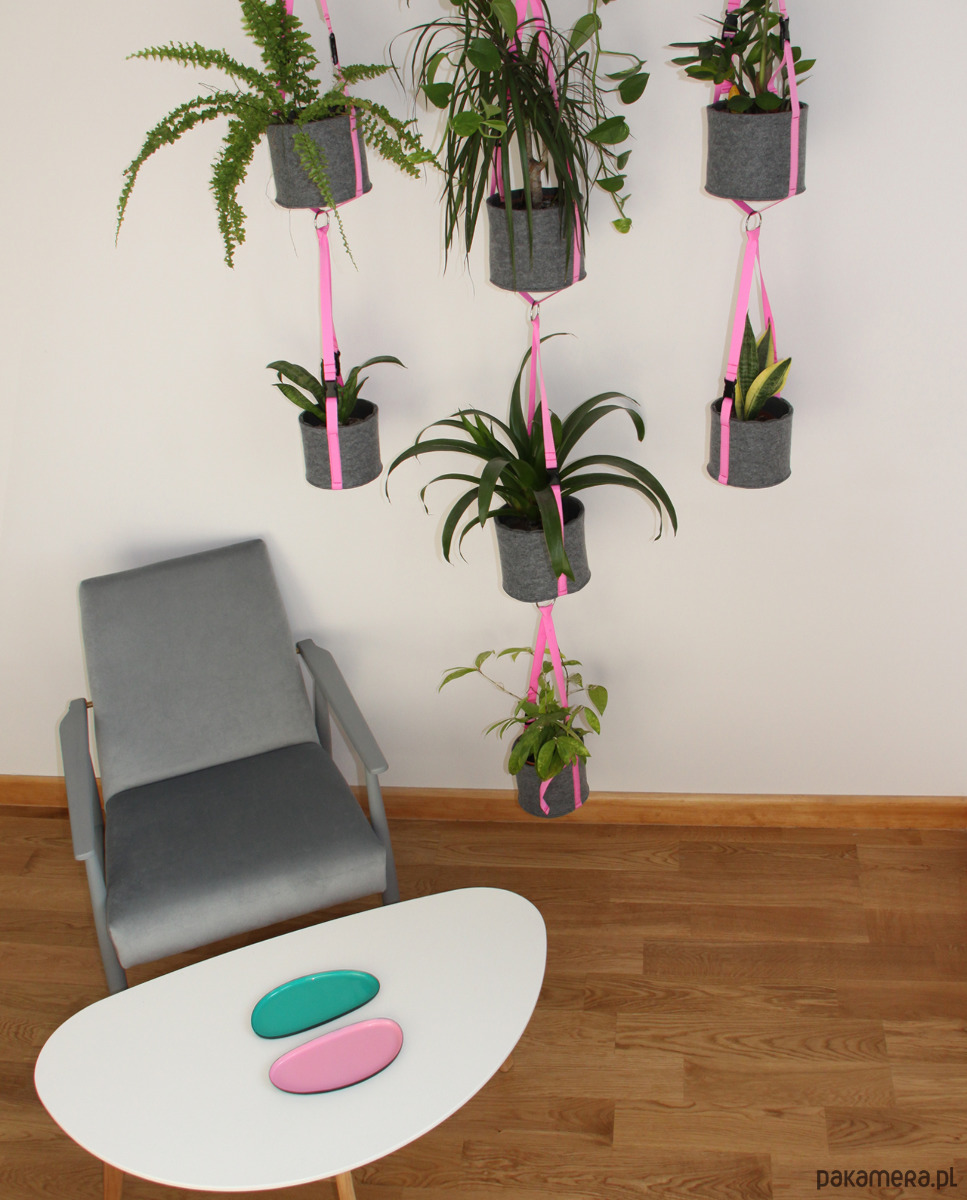 Oszałamiająca ściana kwietna w domu lub biurze? Kwietnik Hanggo to odpowiedź na nowoczesne podejście do architektury wnętrz. Łączy w sobie minimalistyczną estetykę z modernistyczną funkcjonalnością. Pozwoli Ci wyczarować kojący zmysły roślinny raj, gdziekolwiek tylko zechcesz. Filcowe osłonki na doniczki to zwrot ku naturze i symbol miłości do stylu eko. Taśmy i klamry umożliwiają powieszenie kwietnika na wybranej wysokości. Dzięki regulacji długości taśm jesteś w stanie w kilka chwil zaprojektować własną instalację. Kwietniki możesz zawieszać jeden pod drugim – to daje niemal nieograniczone możliwości aranżacji. Hanggo sprawdzą się nie tylko w domowym salonie. Są doskonałą ozdobą dla biur, hotelowych lobby, restauracji lub poczekalni. Stworzysz z nimi wyjątkowe ściany kwietne, a nawet roślinne przegrody w przestrzeni publicznej. Wykonałam je w kilku opcjach kolorystycznych: bezpiecznej szarości, graficie i czerni oraz elektryzującej zieleni, która perfekcyjnie współgra z kwiatami.
