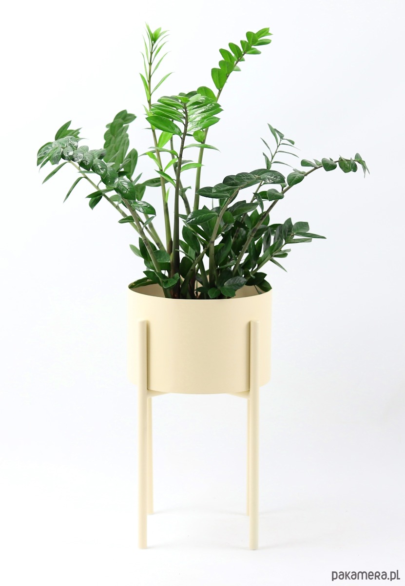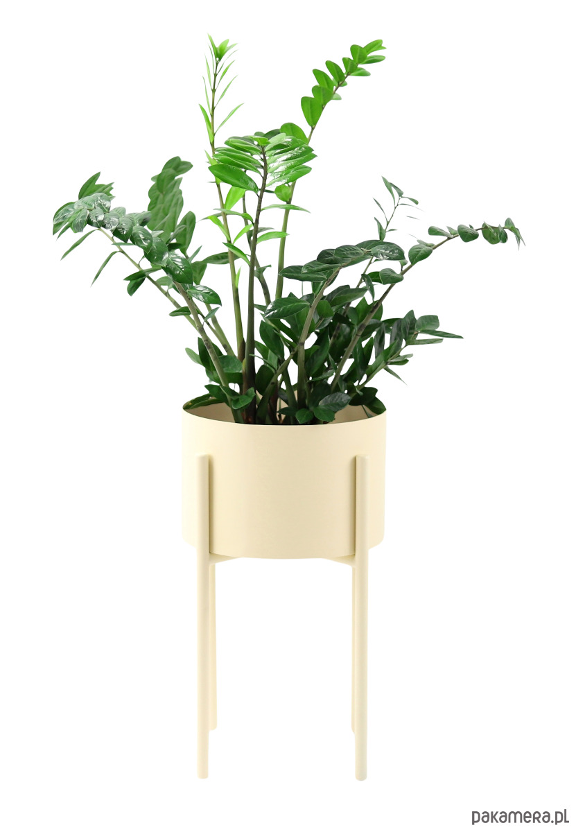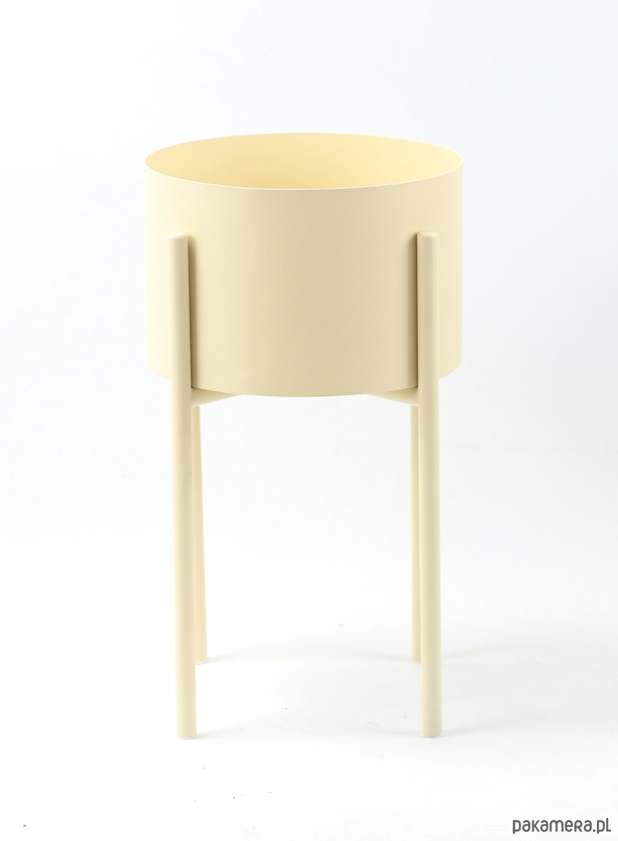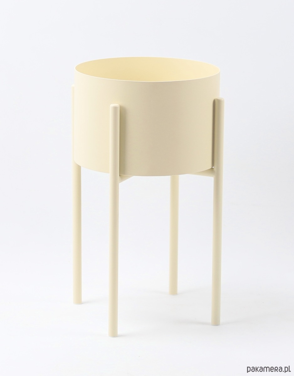 Kwietnik został wykonany z lakierowanego proszkowo metalu w kolorze beżowym.