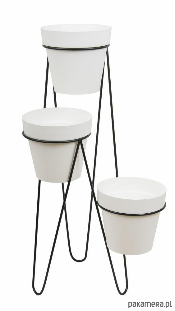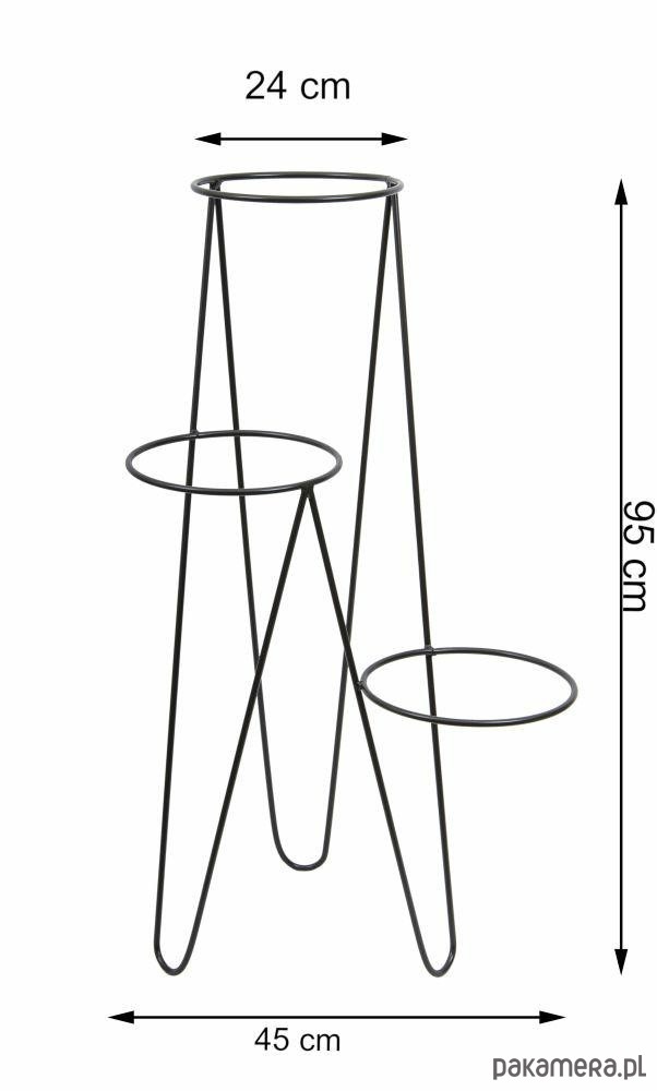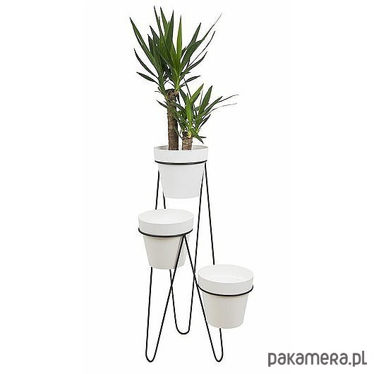 Nowoczesny potrójny kwietnik stojący w stylu loftowym. Dzięki swojej prostocie i unikalnemu designowi stojak będzie idealny jako uzupełnienie do każdego stylu mieszkania, pokoju czy domu. Dzięki solidnemu i wytrzymałemu wykonaniu sprawdzi się również na: balkon, ogród, altanę czy werandę.