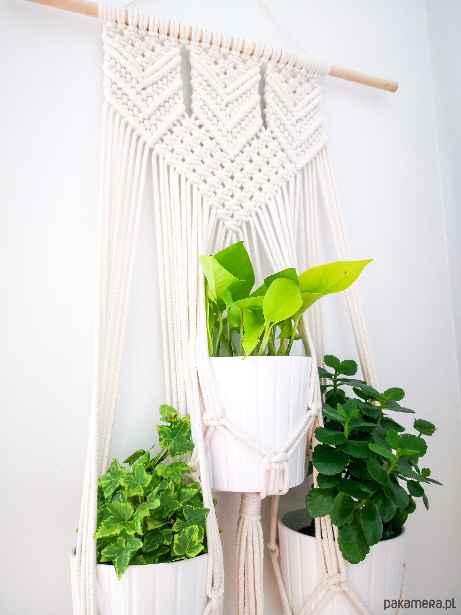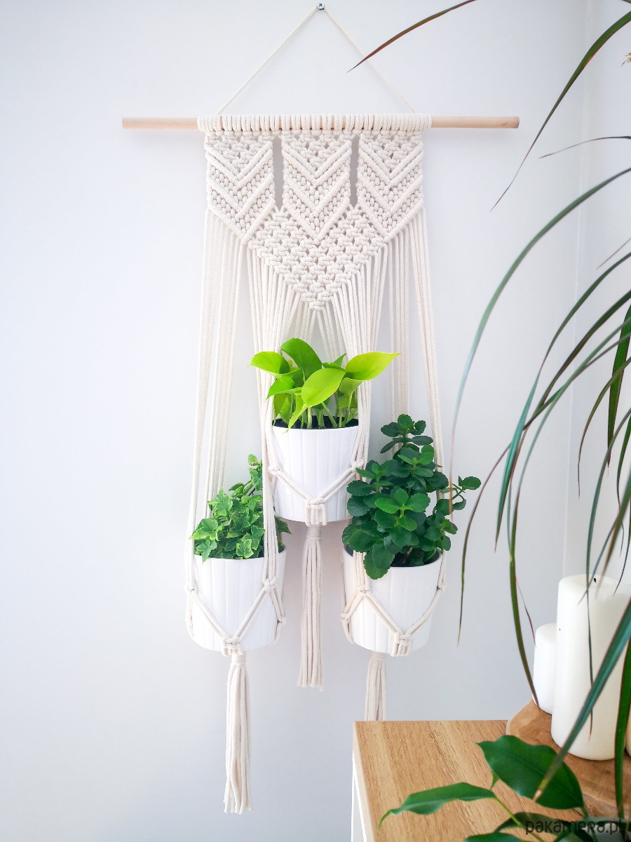 Makrama kwietnik wiszący potrójny Arrow