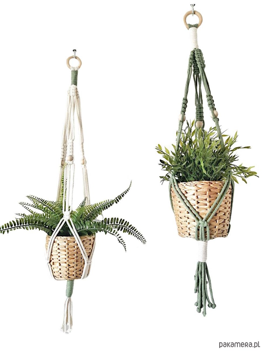 Kwietniki wiszące makrama ze sznurka, zestaw 2 sztuki.