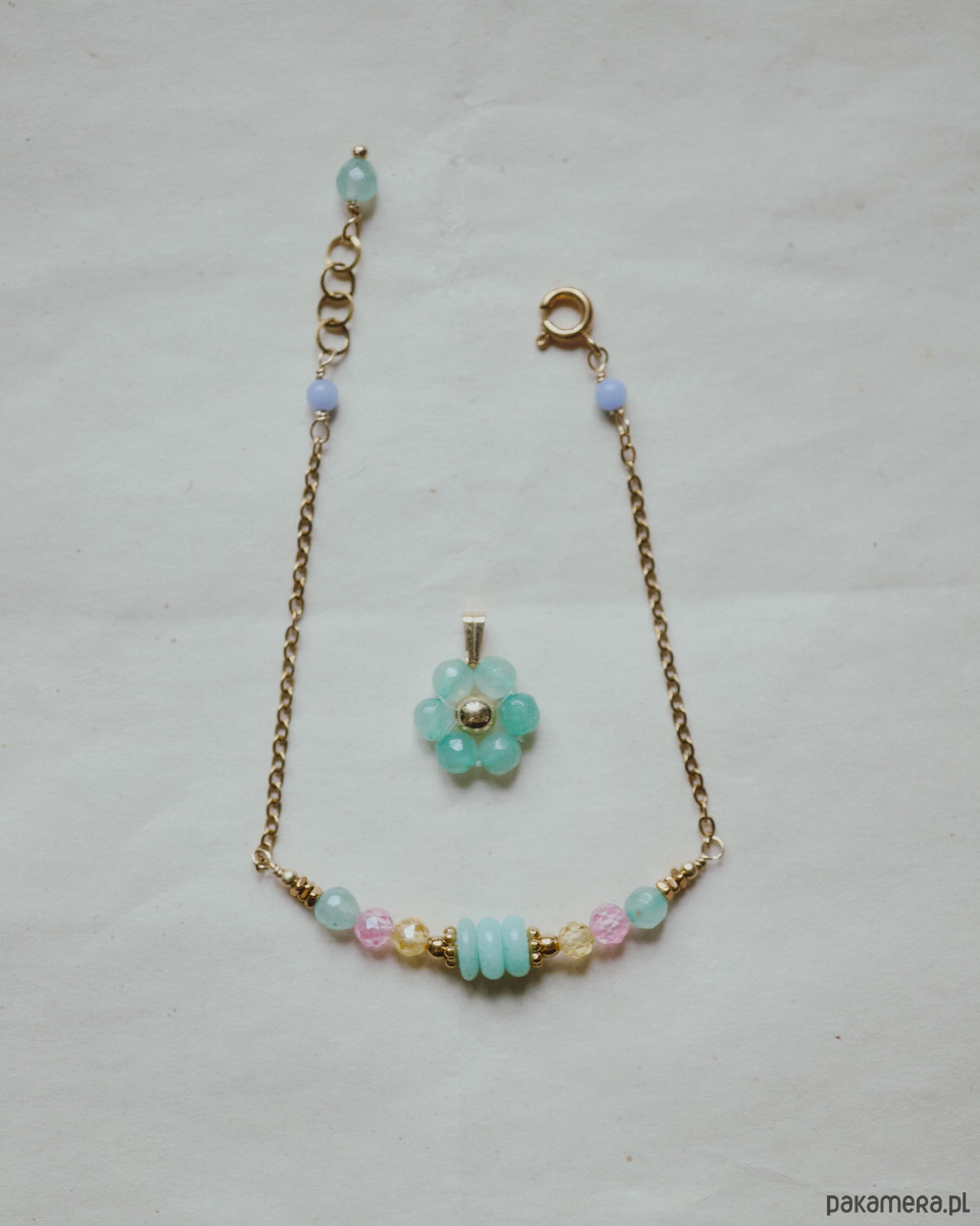 Jak wyglądałby kwiecień gdyby był bransoletką? Ten miesiąc to już nie jest takie cichutkie budzenie się do życia, to wybuch kolorów i rozkwit ✿ Dlatego do tego projektu wybrałam pastelowe kolory, ale w bardzo energetycznym zestawieniu. Mamy tu morski (amazonit i awenturyn), błękitny (angelit), cytrynowy i baby pink (cyrkonie). Z Kwietniówką się rozkwita, tańczy, wyciąga odważniejsze kolory i połączenia z szafy. Teraz jest czas na ekspresję! 𐔌՞ ܸ.ˬ.ܸ՞𐦯
