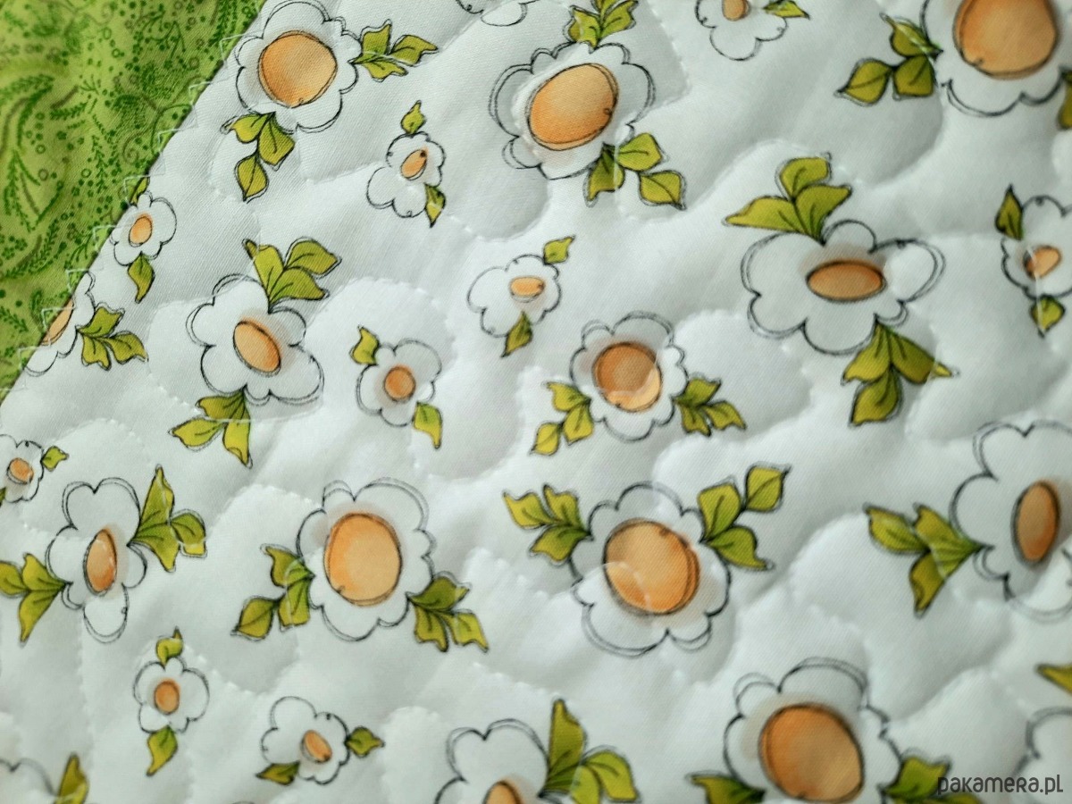 Tkaniny nie farbują, nie tracą kolorów po praniu. Szyte z trzech warstw, pikowane maszynowo.